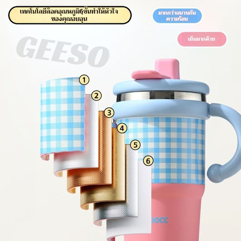GEESO 316 Stainless Steel แบบใหม่มีที่จับ แก้วกาแฟ แก้วเก็บความเย็น 600ml กระติกน้ําร้อน พร้อมหลอด ลายสก็อต Dual Drinking Mouth Cup Water Bottle 双饮保温杯