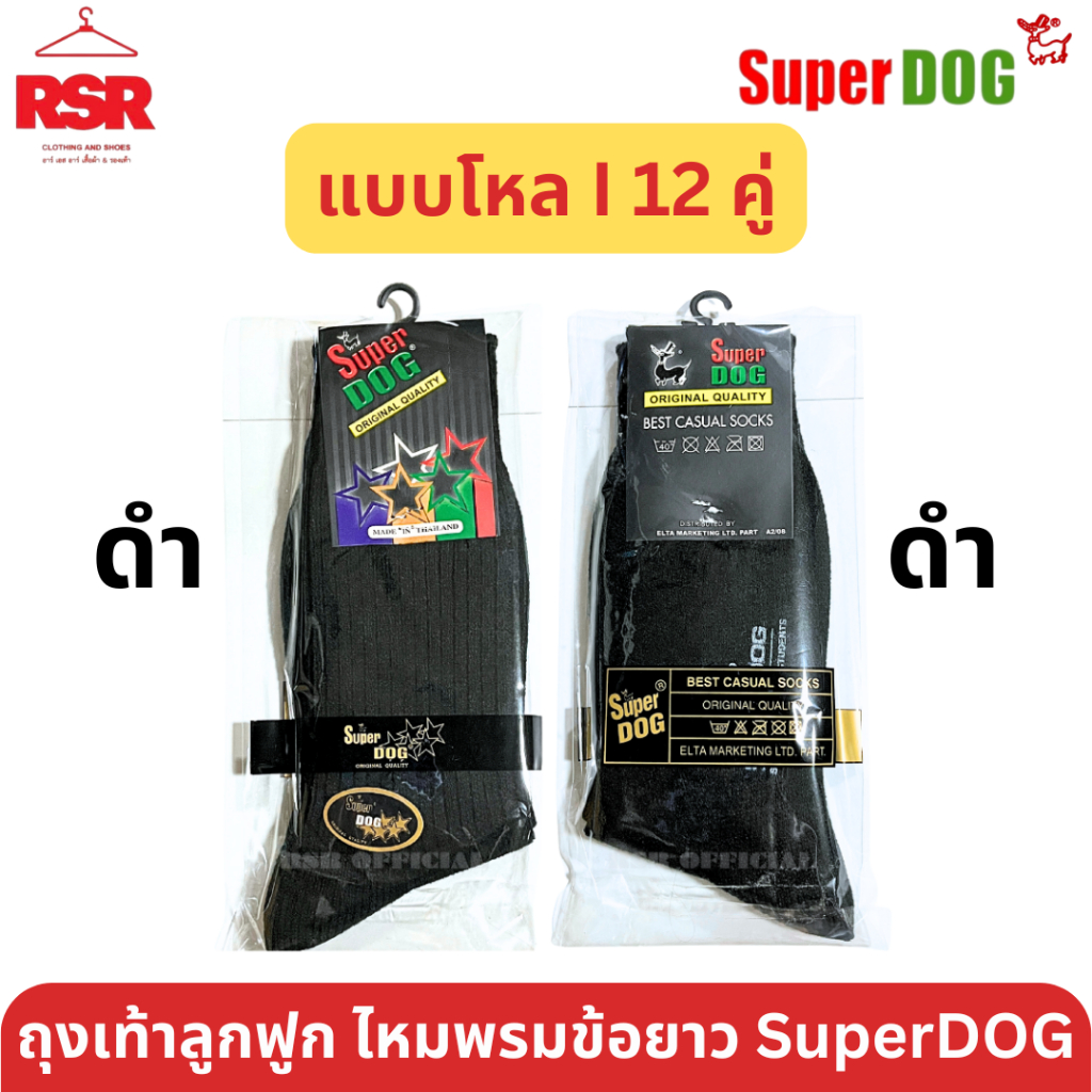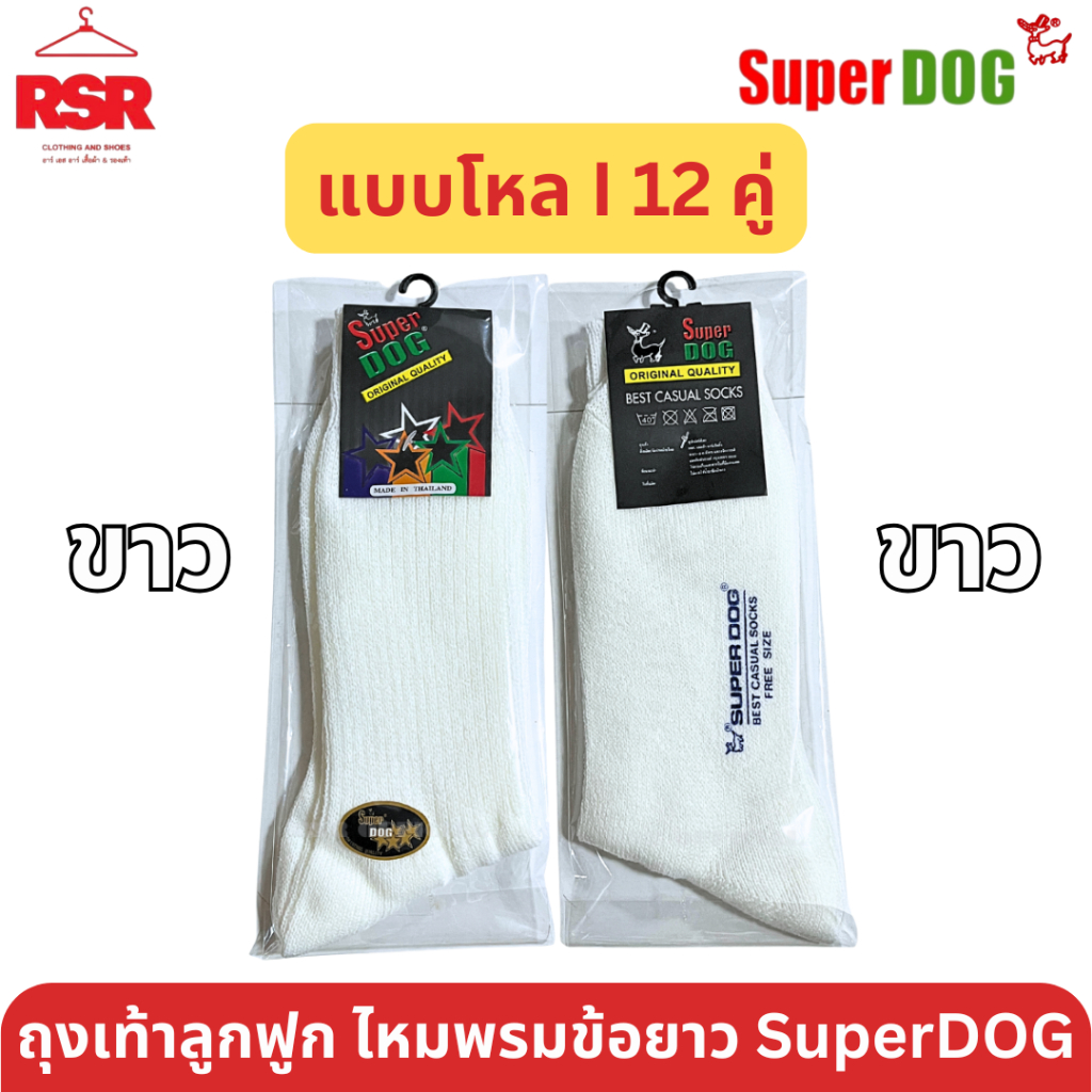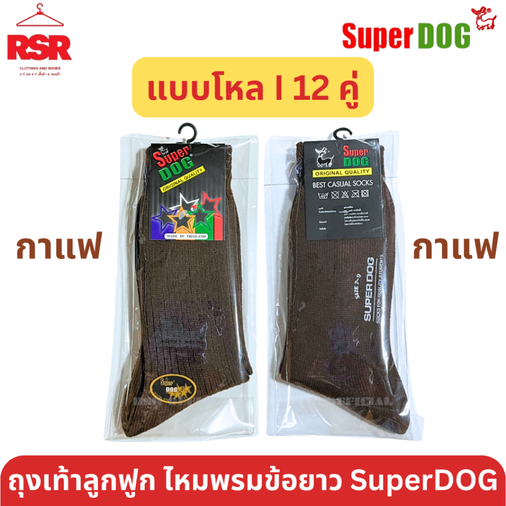 [ แบบยกโหล I 12 คู่ ] SuperDog ซุปเปอร์ด๊อก ถุงเท้าลูกฟูก ไหมพรม ข้อยาว สีดำ สีกาแฟ สีน้ำตาล สีขาว ไซส์ 7-9 - 9-12