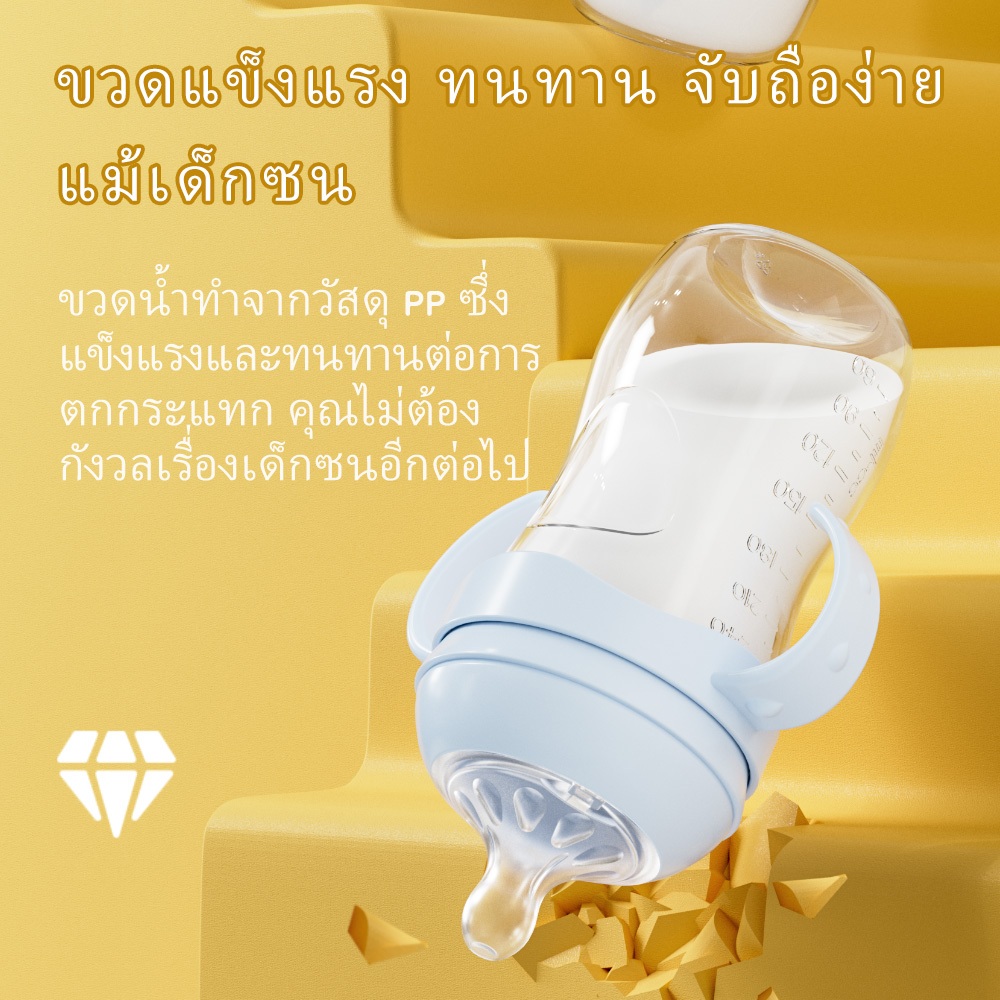Dr.isla ขวดนมปากกว้าง55mm กันลม ไร้BPA/BPS จุกนมนุ่ม เบา ล้างง่าย ทนทาน 3ขนาด(150-330mL) PP15