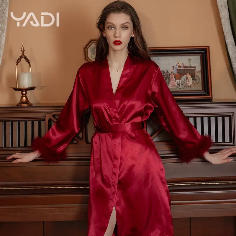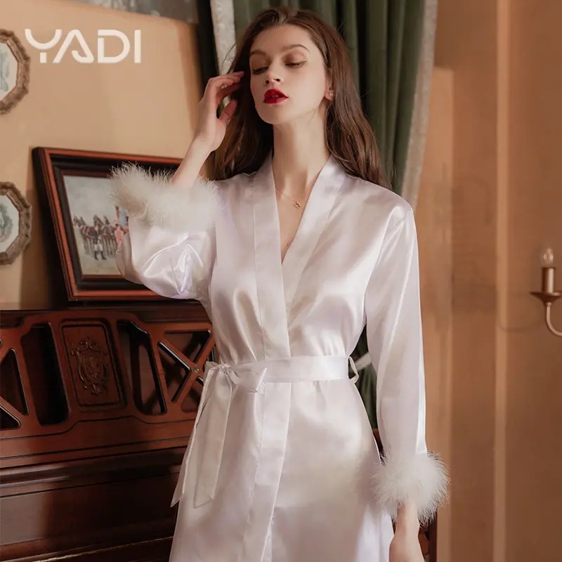 【YADI】เสื้อคลุมนอน👰ชุดงานแต่ง ผู้หญิง ชุดนอน sexy เจ้าสาว ขนนก แต่งงาน กิโมโน ซาติน เสื้อคลุมอาบน้ำ บาท💤