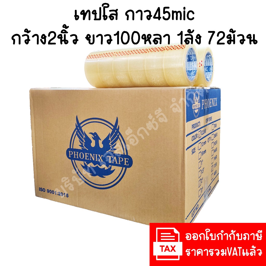 (ยกลัง 72ม้วน 100หลา ส่งไว) Phoenix เทปใส เทปสีน้ำตาล กว้าง 2นิ้ว ยาว100หลา เทปกาว