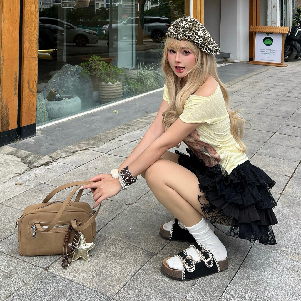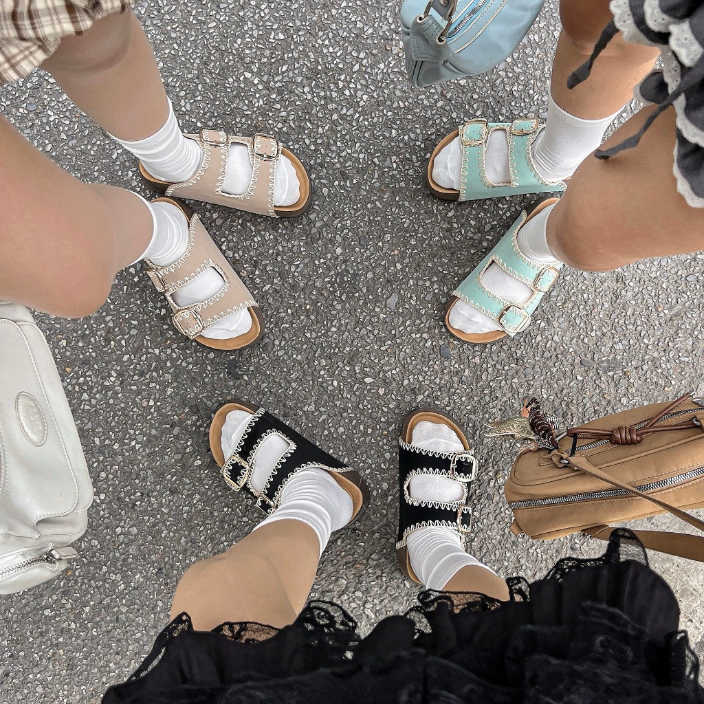 JASMINE✨รองเท้าทรงไบเก้นส้นหนา 1.5 นิ้ว ปักลายสวยมากๆ งานช่างไทย พร้อมส่ง