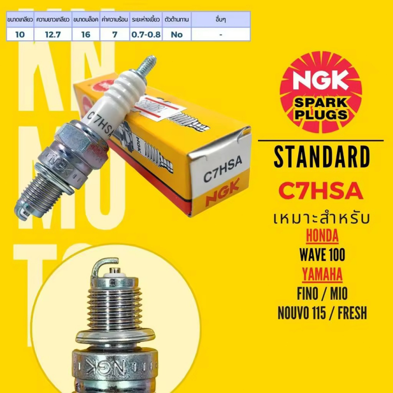 หัวเทียนมอเตอร์ไซค์ NGK ( 1กล่อง10หัว) C7HSA CPR6EA-9 CR8E หัวเทียนเกลียวสั้น มอเตอร์ไซด์ เวฟ110i/115/125 มีโอ