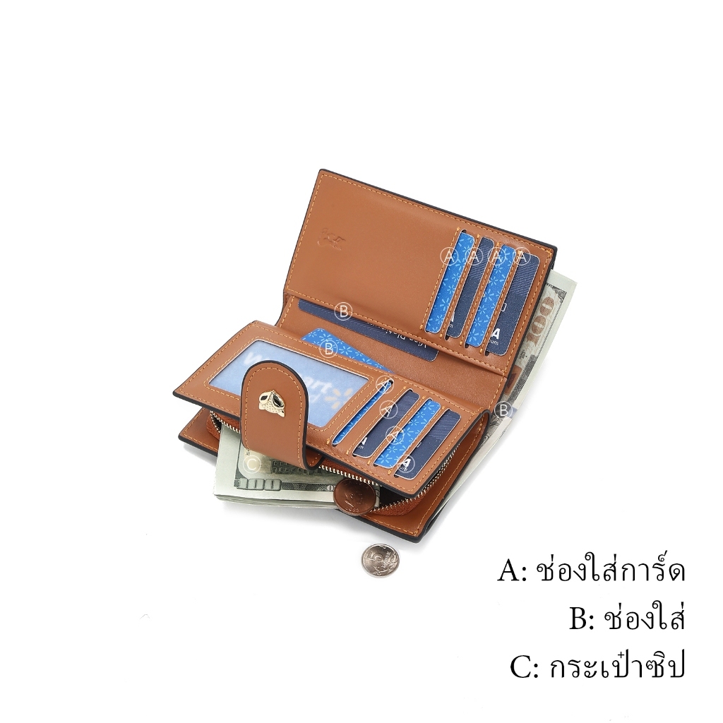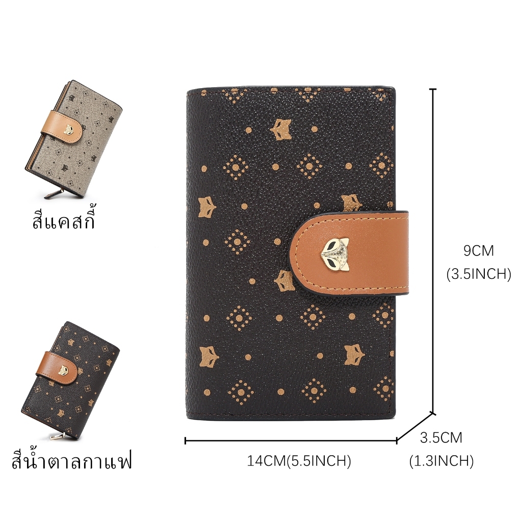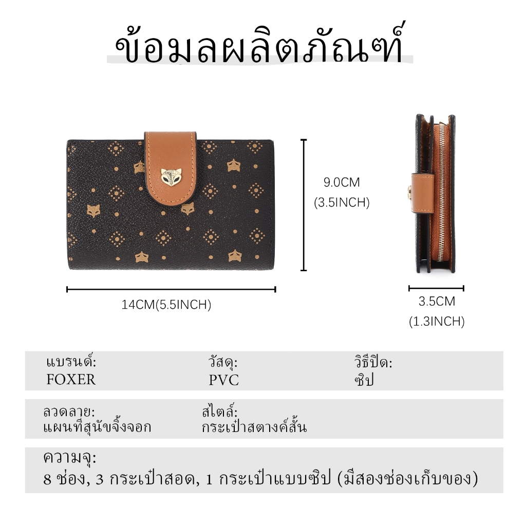 FOXER กระเป๋าสตางค์ใบสั้นพิมพ์ลาย ที่ใส่บัตรเครดิต กระเป๋าใส่เหรียญ กระเป๋าสตางค์ผู้หญิง