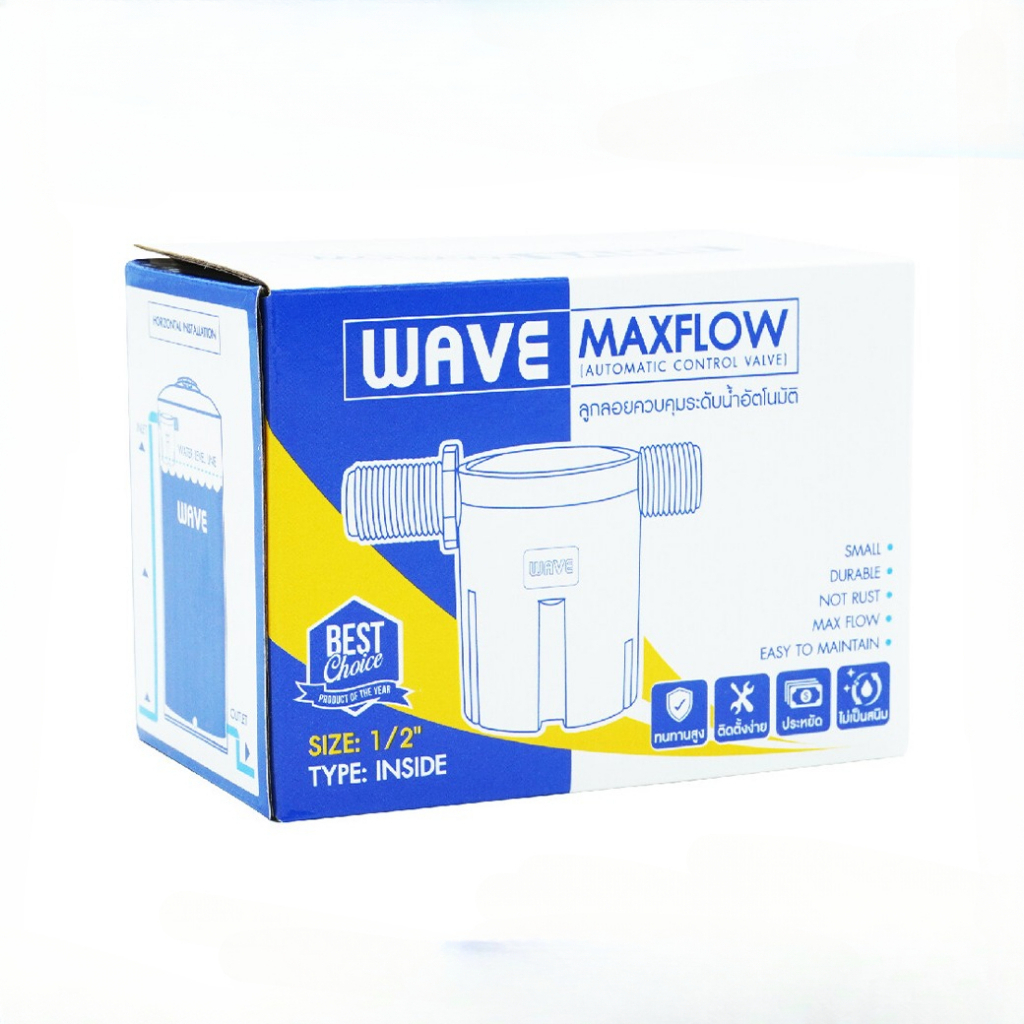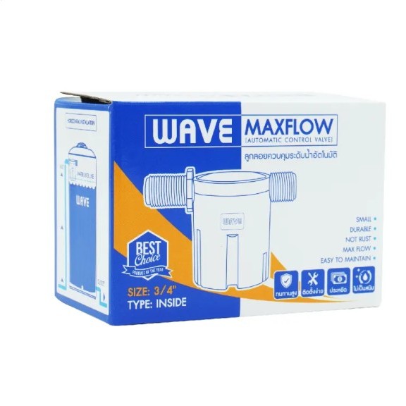 WAVE ลูกลอย MAXFLOW ขนาด 3/4 และ 1 นิ้ว วาล์วลูกลอยควบคุมน้ำอัตโนมัติ