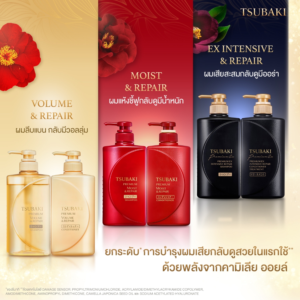 Tsubaki Premium Shampoo&Conditioner ซึบากิ พรีเมียม แชมพูและคอนดิชันเนอร์ 450มล. ผมนุ่มสวย ฟื้นบำรุงผมเสีย
