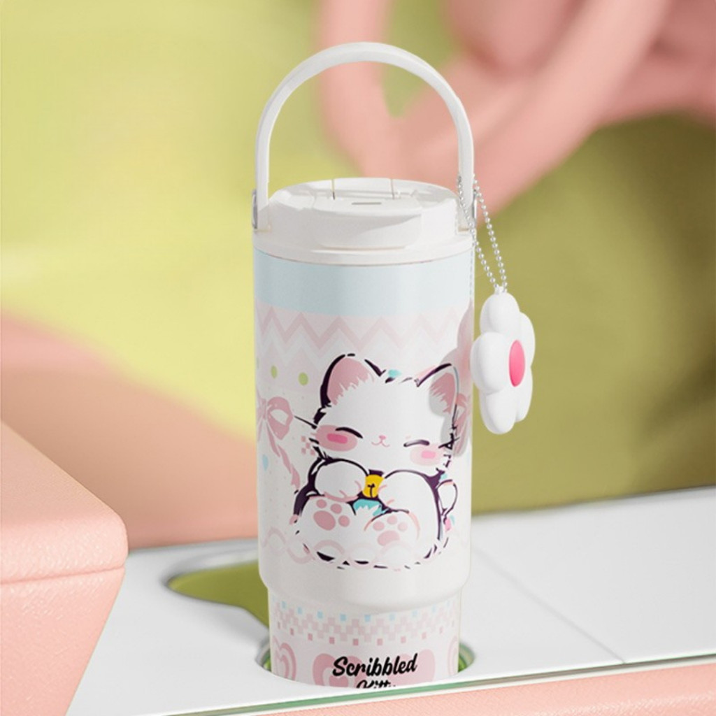 XIAOJU แก้วเคลือเซรามิก ใช้งานกับเครื่องได้ทุกชนิด สกรีนลาย 880ML เก็บทั้งร้อน & เย็น ทนต่อการกัดกร่อน ไม่เป็นสนิม