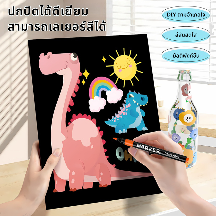 ปากกาอะคริลิค ปากกามาร์กเกอร์อะคริลิค (Acrylic marker pen) ขนาด 12/24/48/80สี สามารถเขียนบนแก้ว พลาสติก หรือโลหะได้ ปากกาเคมี ปากกาเมจิก สีเมจิก ปากกาไฮไลท์ (Highlighter) เครื่องหมาย