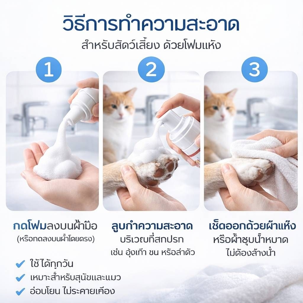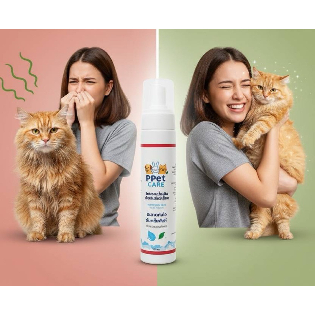 PPet Care Dry Bath โฟมอาบน้ำแห้งสัตว์เลี้ยง สุนัข-แมว | ทำความสะอาด ดับกลิ่น