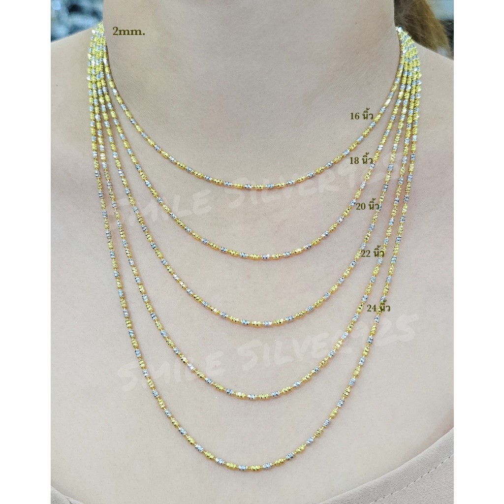 ค29 สร้อยคอปล้องอ้อยตัดลายจิกเพชร 2mm. เงินแท้ 92.5% Italy ชุบ2กษัตริย์ (WG+G)