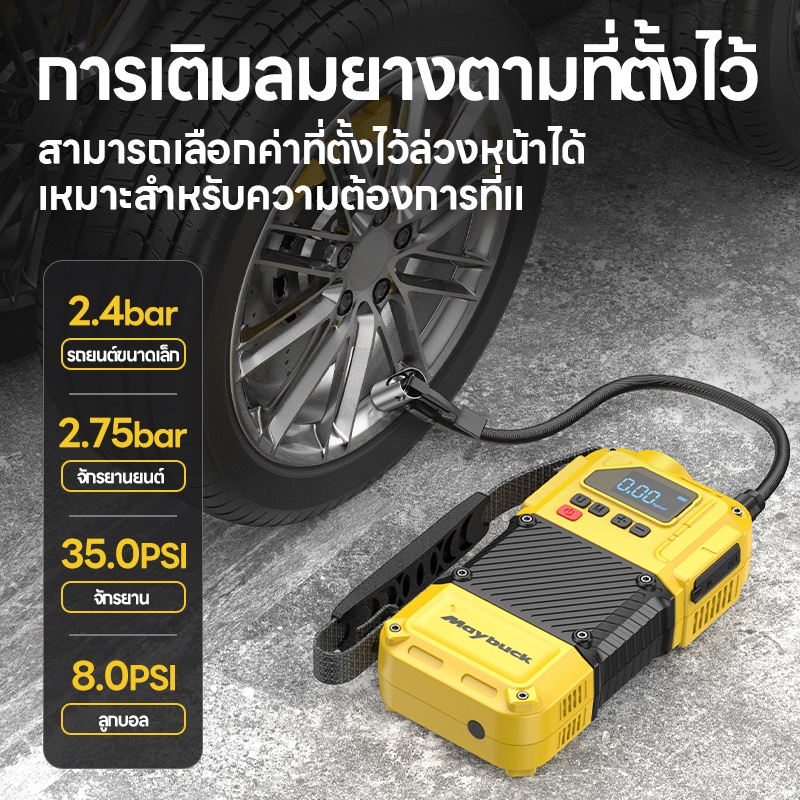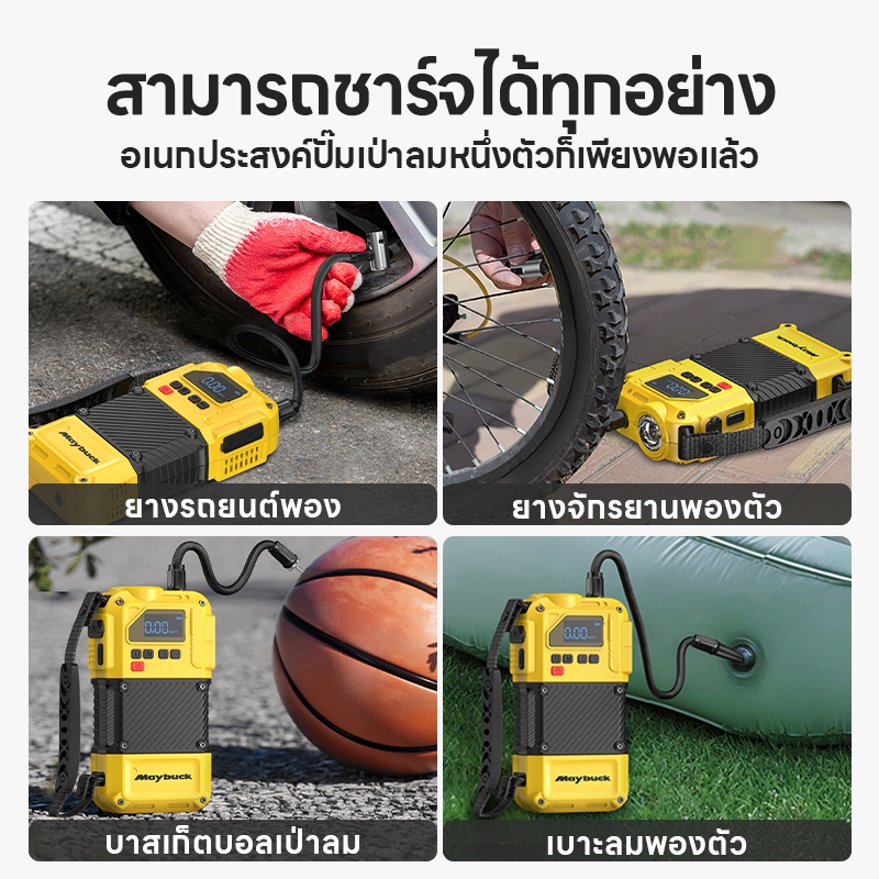 Maybuck ประเทศญี่ปุ่น 4 in 1 พกพา เครื่องปั๊มลมรถยนต์ + ไฟฉาย + พาวเวอร์แบงค์ + เครื่องช่วยสตาร์ทรถ