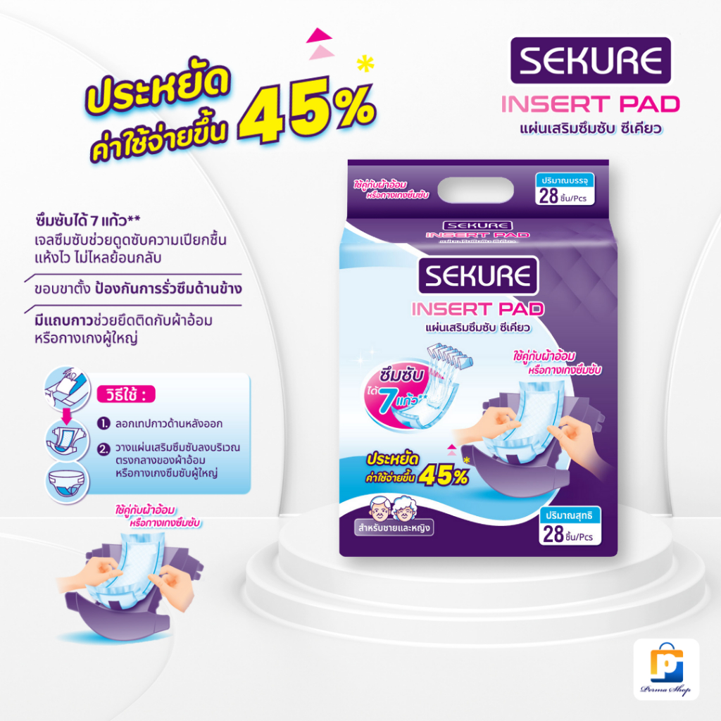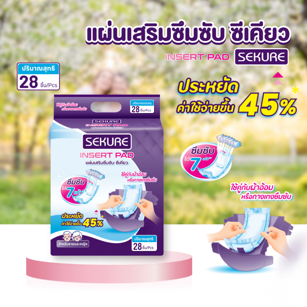 SEKURE แผ่นเสริมซึมซับ แผ่นเสริมผ้าอ้อมผู้ใหญ่ ซีเคียว Adult insert Pads (จำนวน 1 ห่อ 28 ชิ้น)