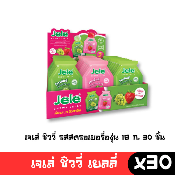 [พร้อมส่ง🚛] Jele Chewy Jelly เจเล่ชิววี่ เยลลี่ผสมบุก สตรอเบอรี่ องุ่น ลิ้นจี่0 แคลอรี่ กินได้ไม่อ้วน 1 กล่อง มี 30 ซอง🔔