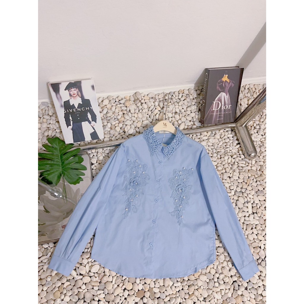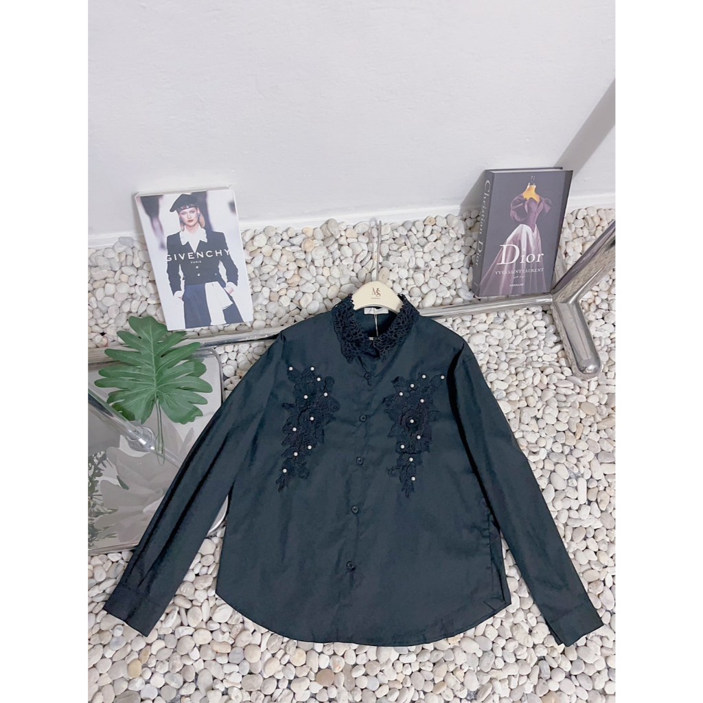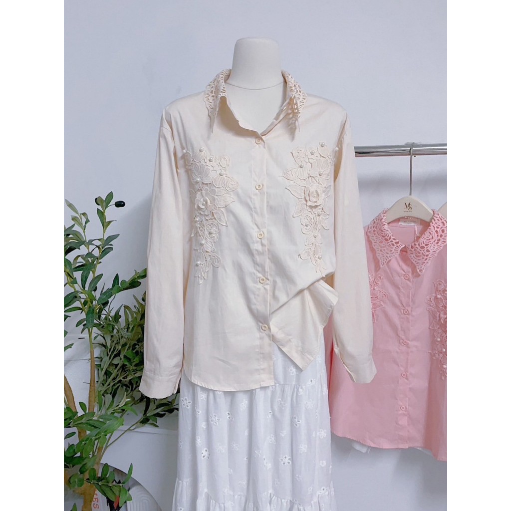 ป้าย My shop เสื้อผ้าคอตตอนแขนยาวแต่งอะไหล่ดอกไม้ อก 42 นิ้ว ยาว 24 นิ้ว