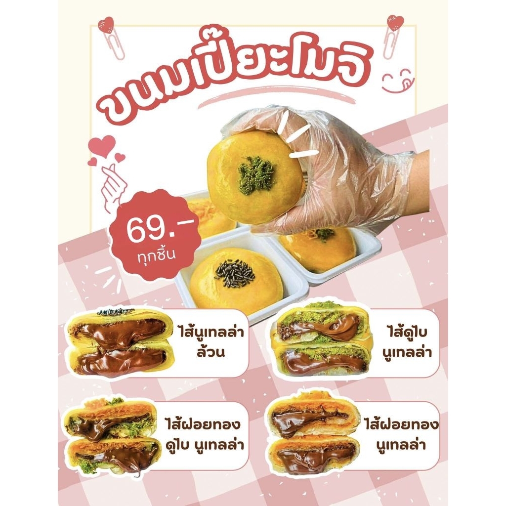 ขนมเปี๊ยะโมจิ69บาท ขนาด 140-150 กรัม ไส้เน้น ไส้ฉ่ำๆ #ฝอยทองนูเทลล่า #ฝอยทองดูไบนูเทลล่า #ดูไบนูเทลล่า 69บาท ทุกไส้ค่ะ