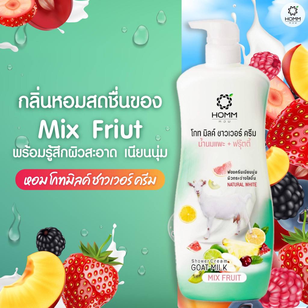 ครีมอาบน้ำ หอม โกท มิลค์ ชาวเวอร์ ครีม กลิ่นน้ำนมแพะ/ ผลไม้ HOMM Goat Milk Shower Cream 900g.