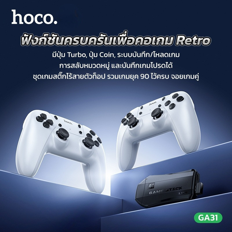 HOCO GA31 Retro Game Stick เครื่องเล่นเกมย้อนยุค 20,000+ เกม ต่อทีวี 4K HDMI พร้อมจอยเกมไร้สาย 2 ตัว เกมส์ต่อทีวี hc6