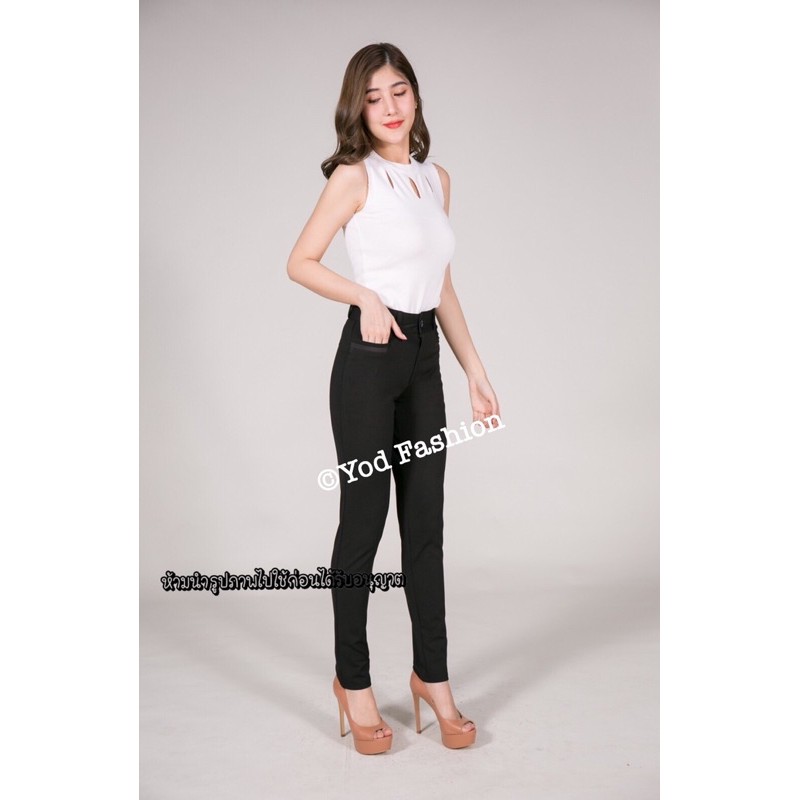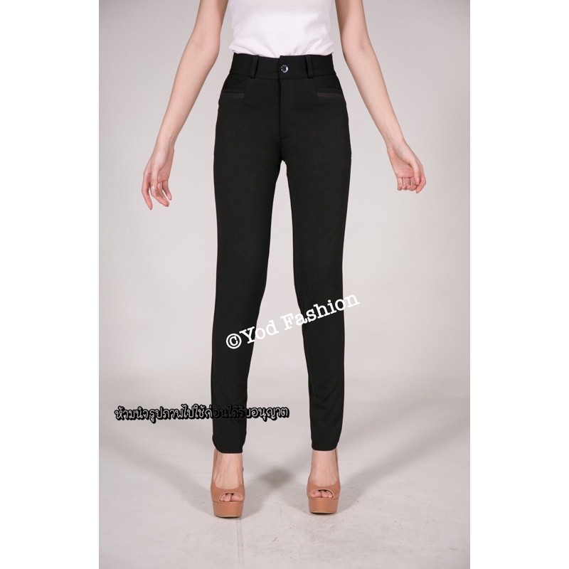 รุ่นกระเป๋าเทา กางเกงทำงาน ทรงกระบอกเล็ก ผ้าโรเชฟ : YodFashion