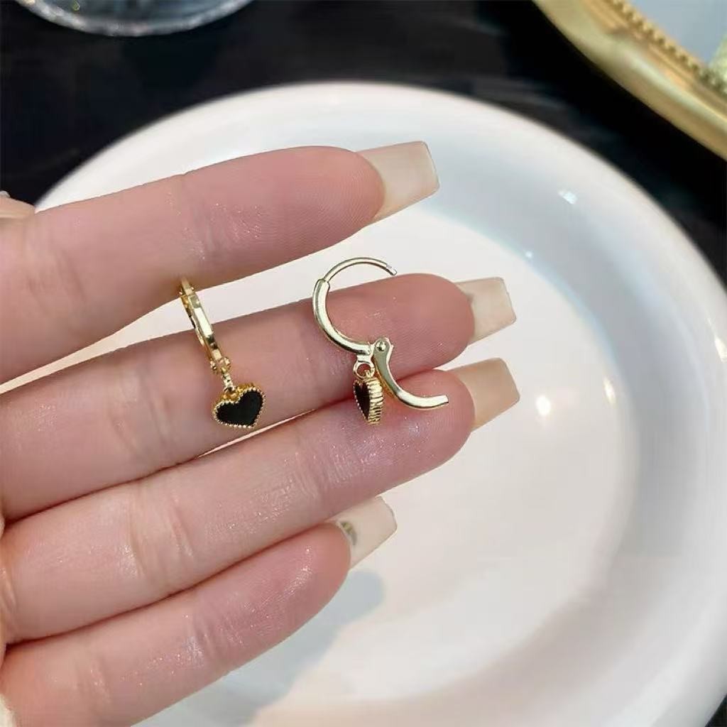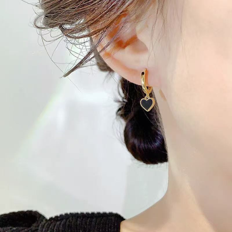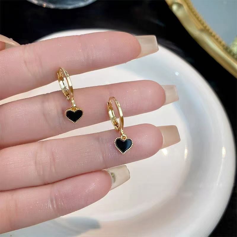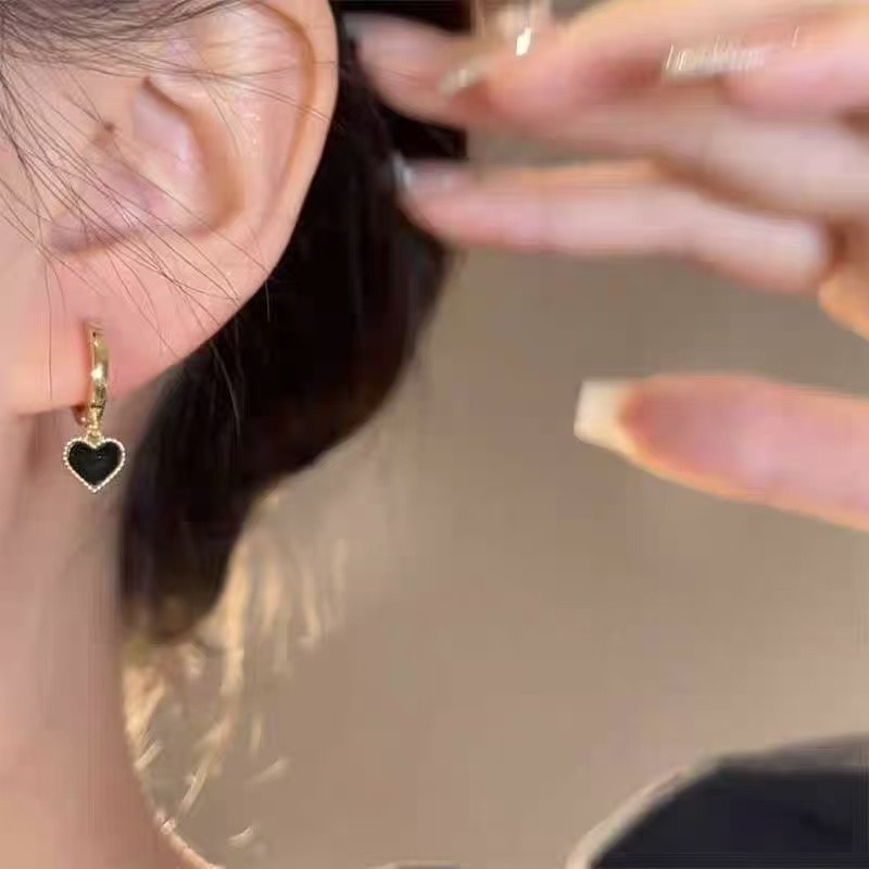 [GG] ส925 เงินเข็มสีดําหัวใจรักต่างหูหญิง 2025 สไตล์ใหม่ร้อนขายต่างหูต่างหู