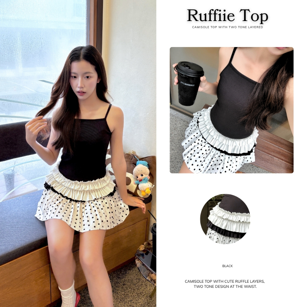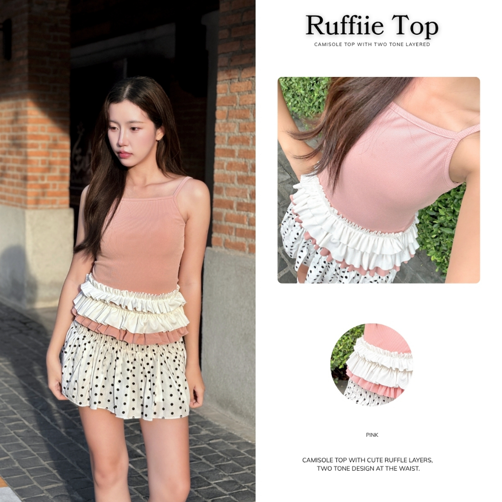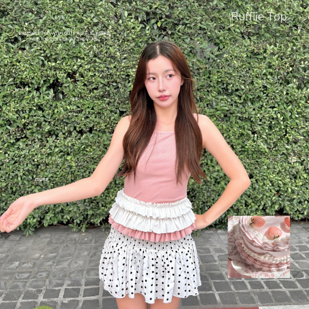 Ruffiie Top | เสื้อสายเดี่ยวแต่งระบายรอบเอว ระบายทูโทน ดีเทลน่ารัก ผ้าGlossyRib เสื้อแต่งLayers T144 | MURF