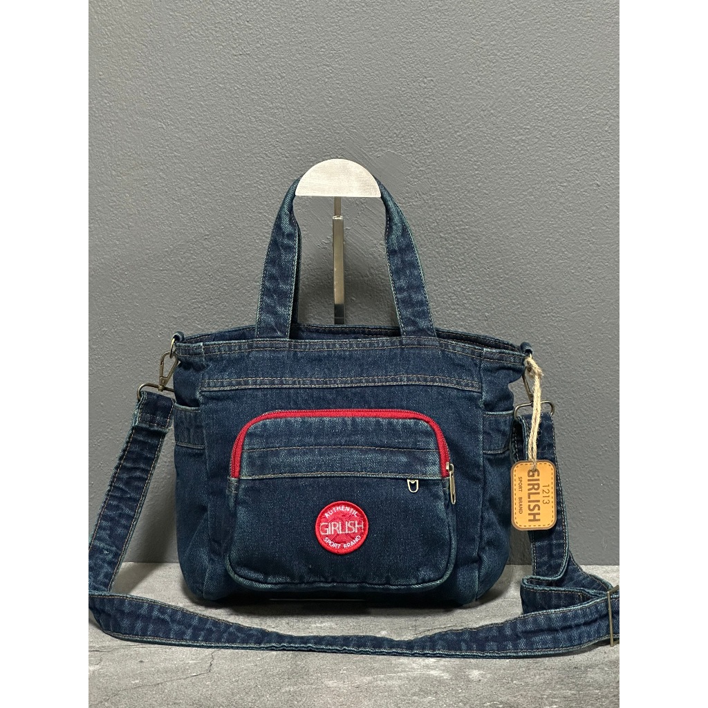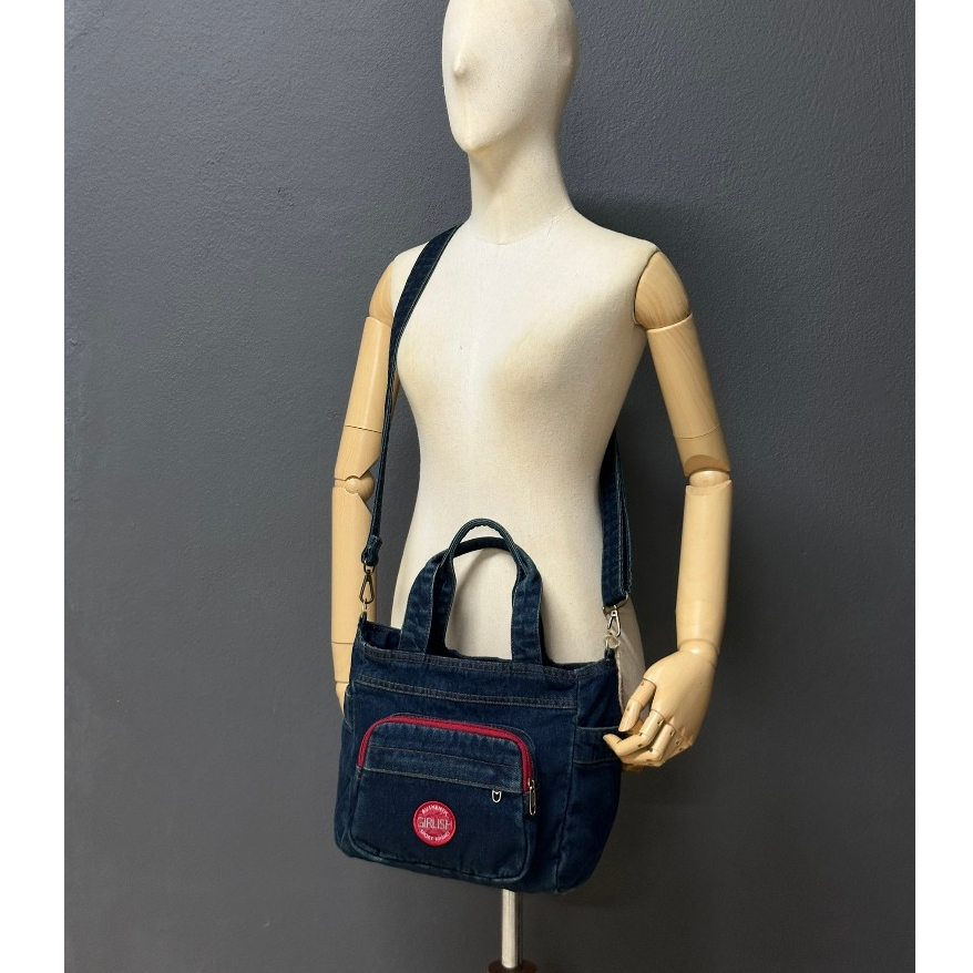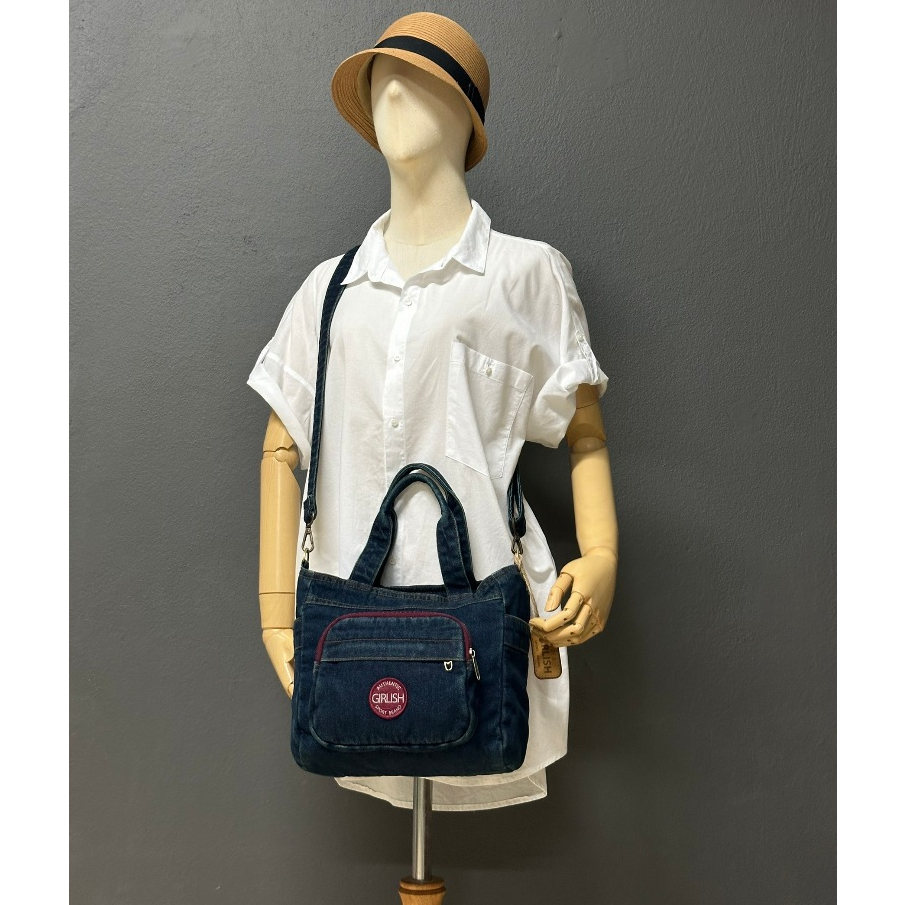 AEIOU No.332กระเป๋ายีนส์ GIRLISH ทรงสะพายข้าง+ถือ รุ่น Logo Sport (กว้าง10นิ้ว สูง10นิ้ว)