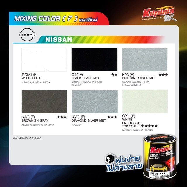 คูลูม่าร์ สีเบอร์ (F) เฉดสีใหม่ NISSAN (สีผสมสำเร็จพร้อมใช้) ขนาด 1 ลิตร