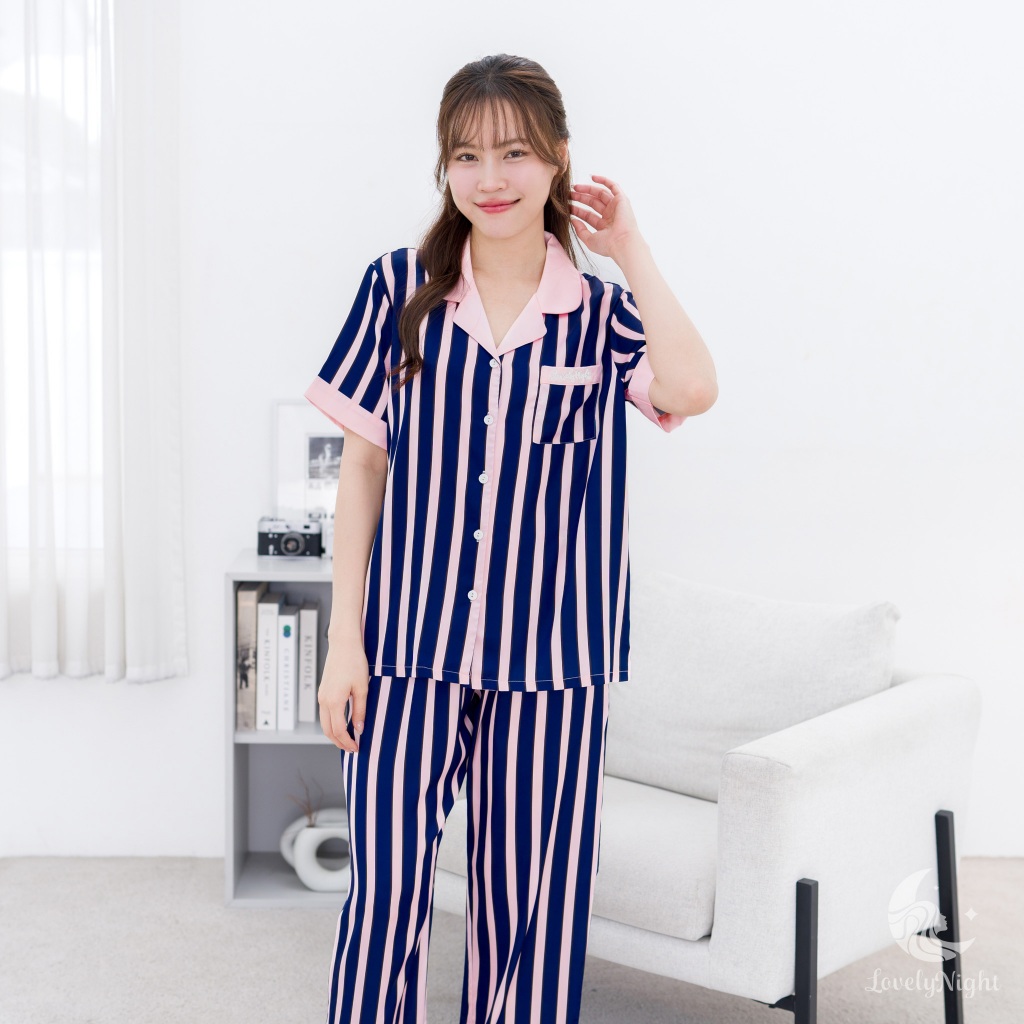 ชุดนอน LovelyNight แขนสั้น-ขายาว Midnight Pink D79
