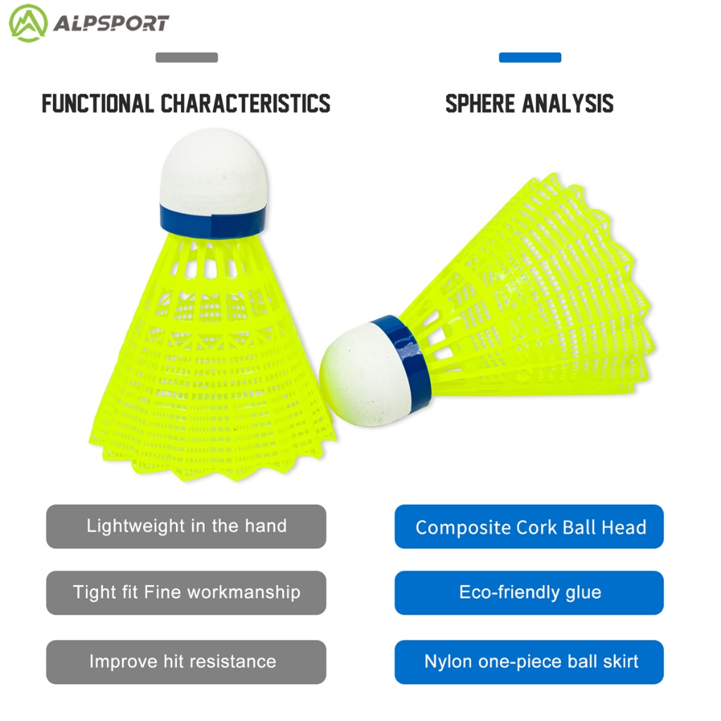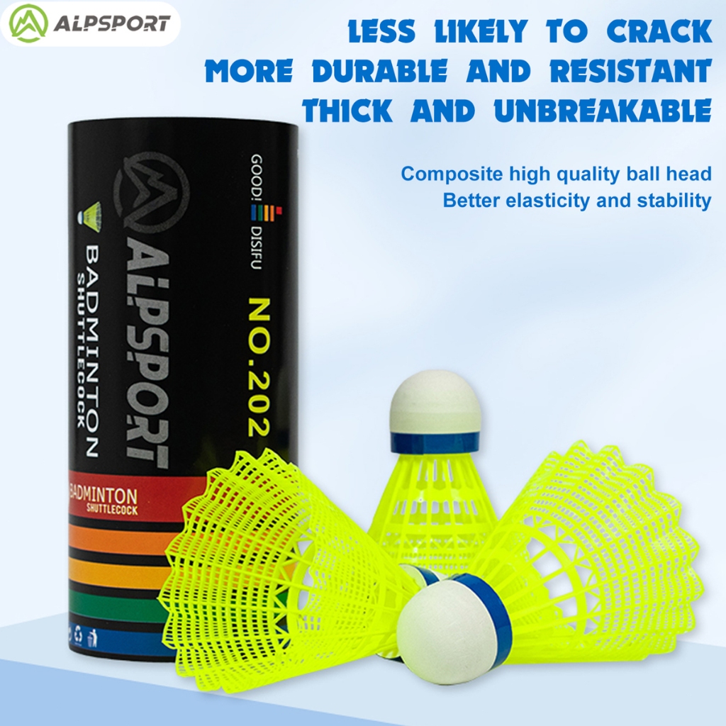 ALPSPORT 202 ไม้แบดมินตันไนลอน 3 ไม้/1 ถัง สีเหลืองสดใส ดีไซน์ดั้งเดิม จัดส่งจากประเทศไทย Badminton