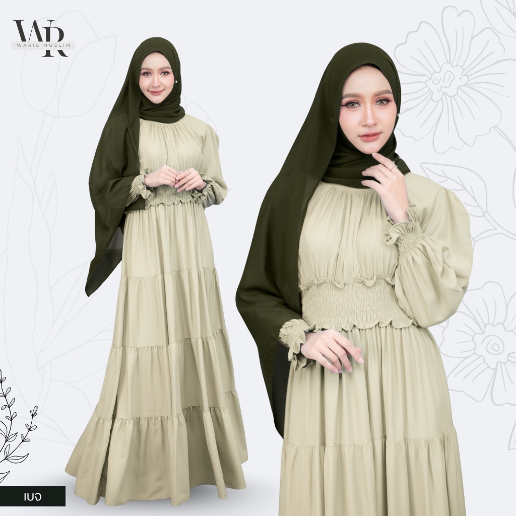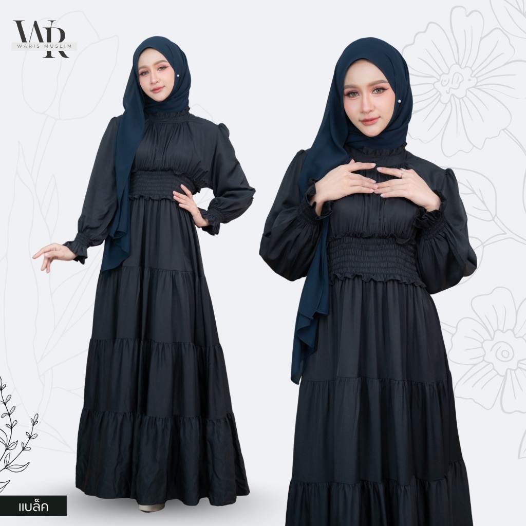 ชุดเดรสออกงานอิสลาม สวมใส่แล้วดูดีเข้าทรงสวยมากๆ เอวสม็อค เหมาะกับผญอิสลามใส่ออกงาน IN33วาริสมุสลิม