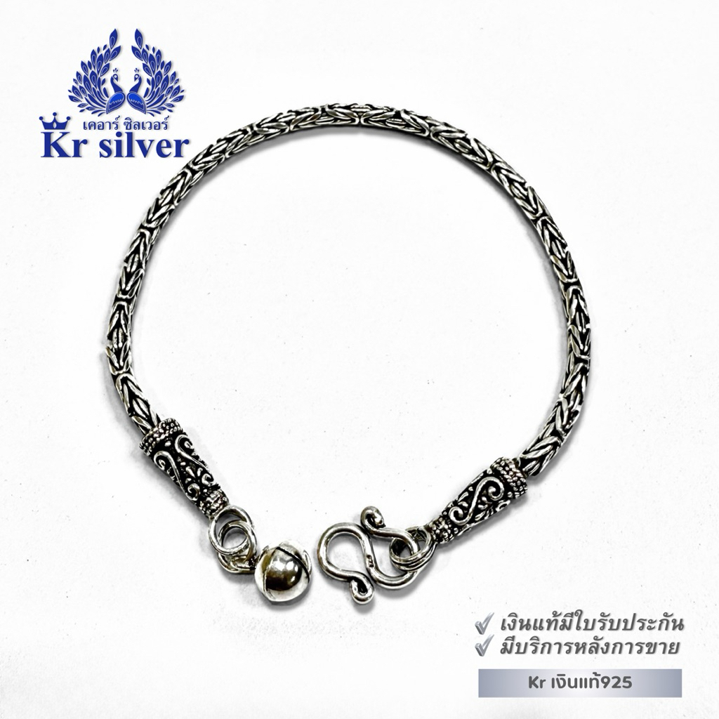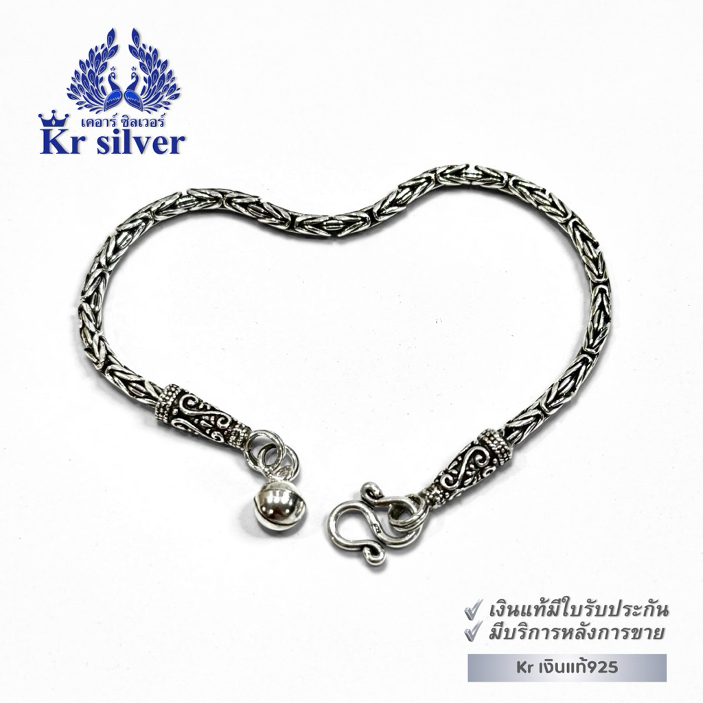 Kr silver เงินแท้มีใบรับประกัน สร้อยข้อมือเงินแท้ ลายบาหลีรมดำ หนา 2.8 มิล | BB100005