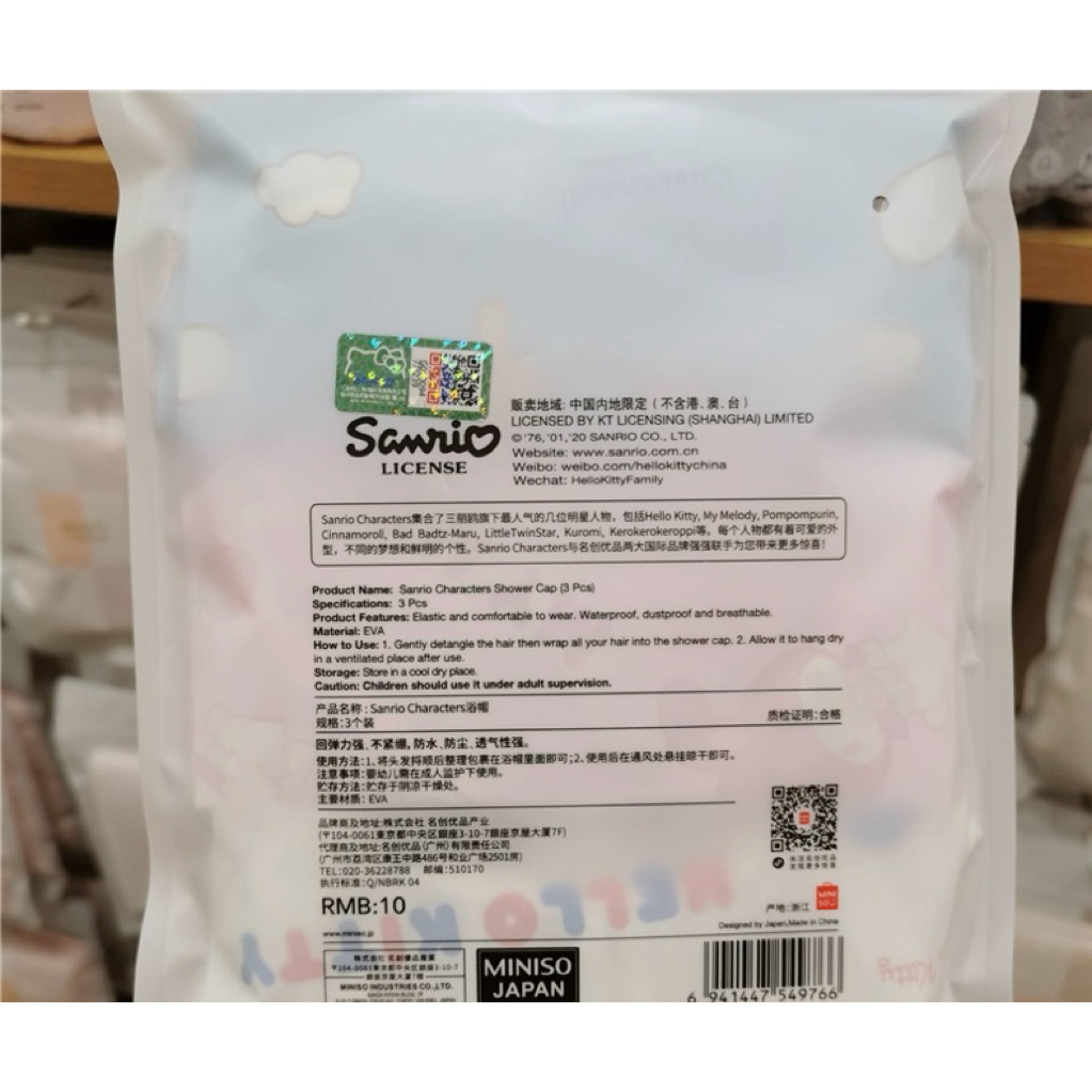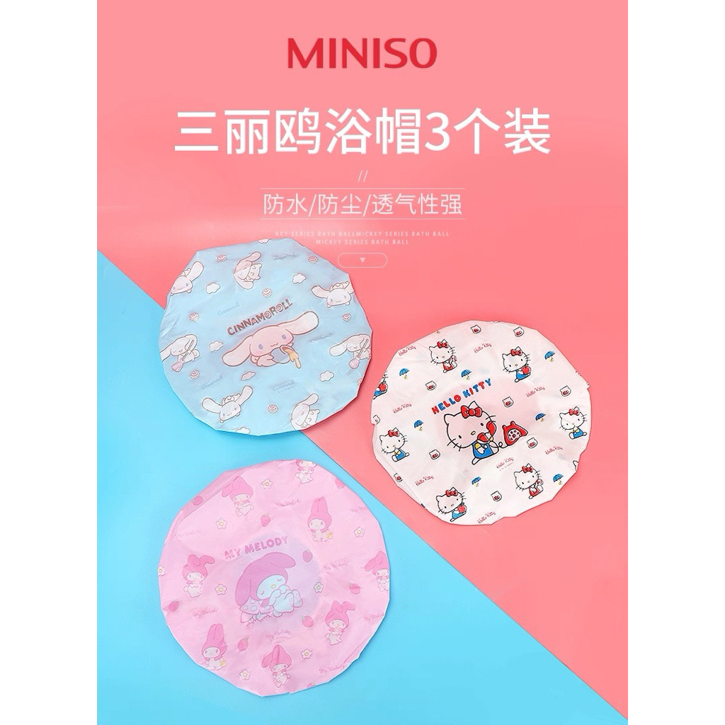 🎀พร้อมส่ง หมวกคลุมอาบน้ำ Sanrio x Miniso (3 ชิ้น/เซ็ต) 🩵🩷