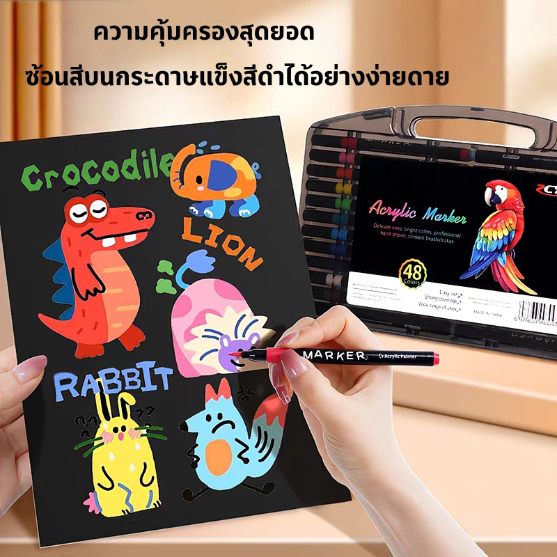 ปากกามาร์กเกอร์อะคริลิค 12/24/36/48/60/80 สี ปากกามาร์กเกอร์อะคริลิคเขียนบนกระจกได้พลาสติกหรือโลหะ ปากกามาร์กเกอร์อะคริลิค สีเมจิก ปากกาเมจิก ปากกาเคมี