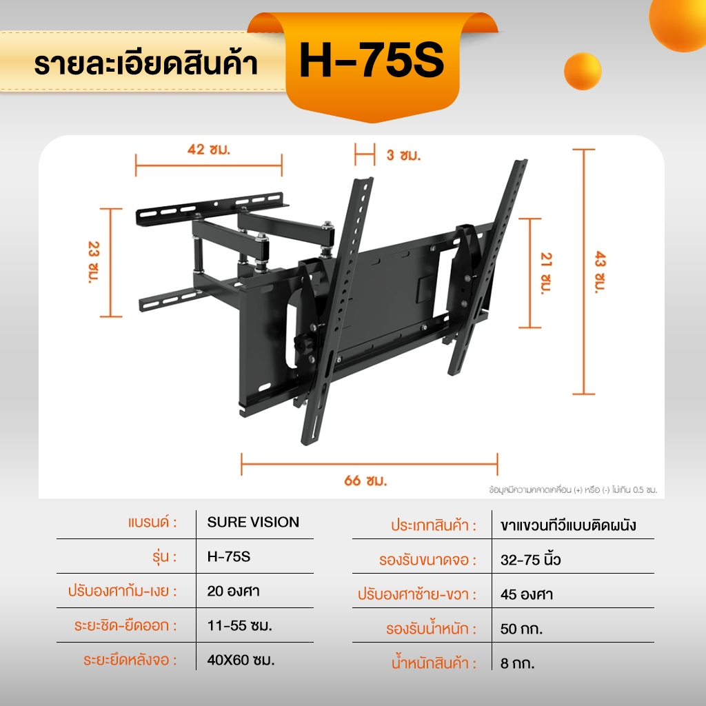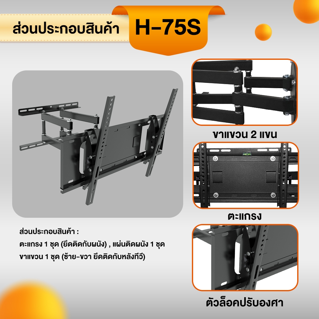 ขาแขวนทีวี Sure Vision ขนาด 32-75 นิ้ว รุ่น H-75S (ปรับหันซ้ายขวา และ ปรับก้มเงยได้)