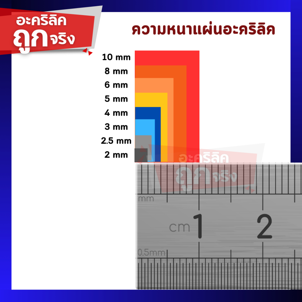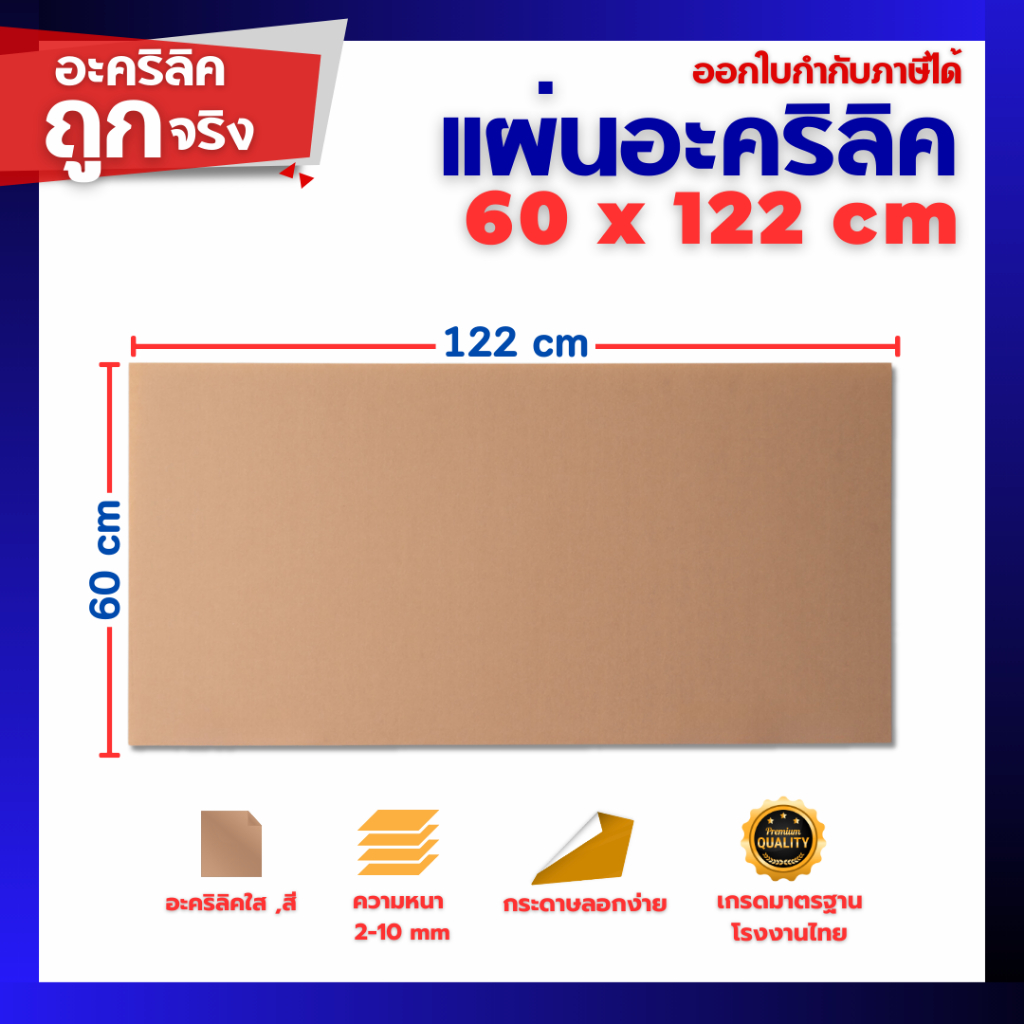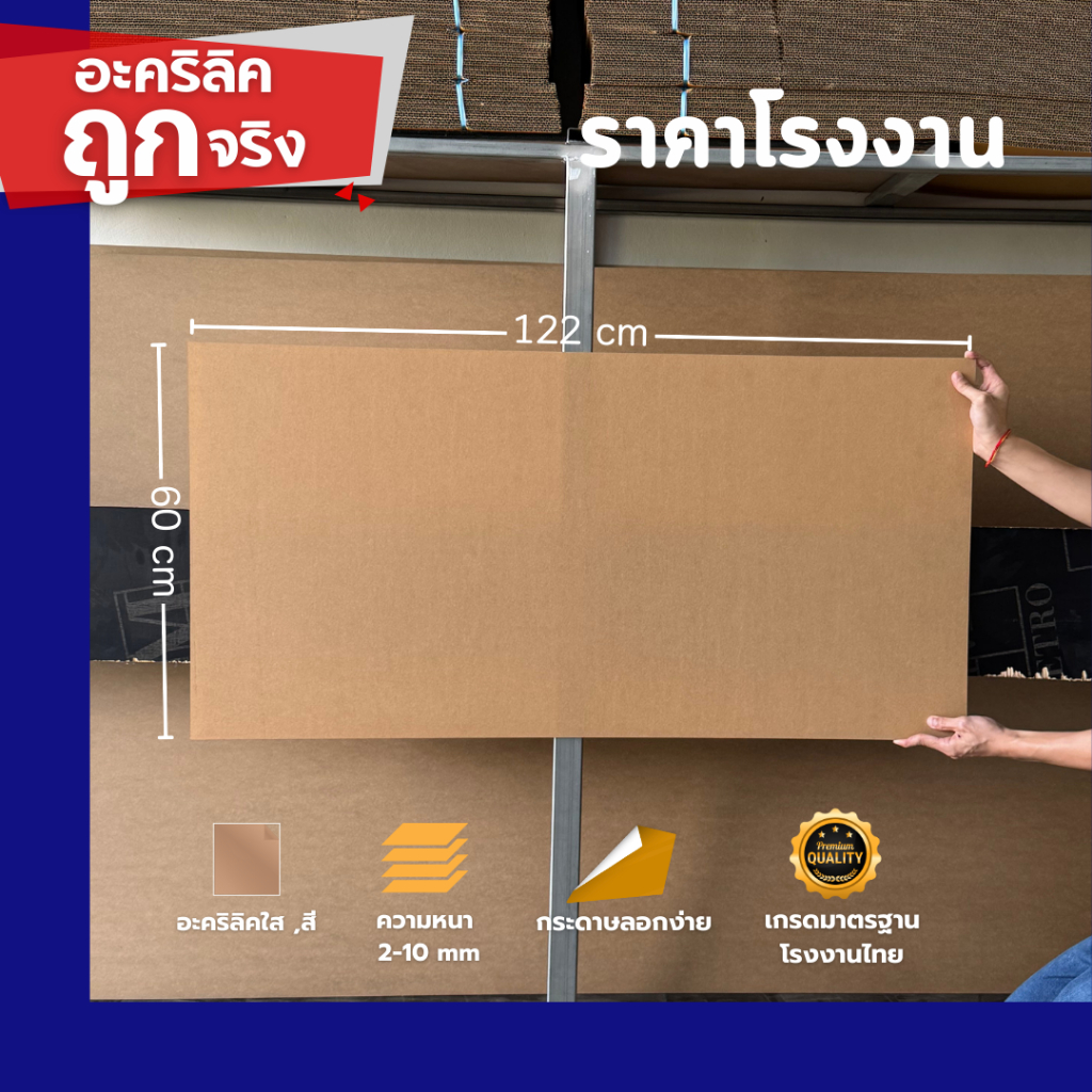 แผ่นอะคริลิค SIZE 60 x 122 cm. หนา 2–10 mm มีสีใส ขาว ขาวขุ่น ดำ แดง น้ำเงิน เขียว ดำใส