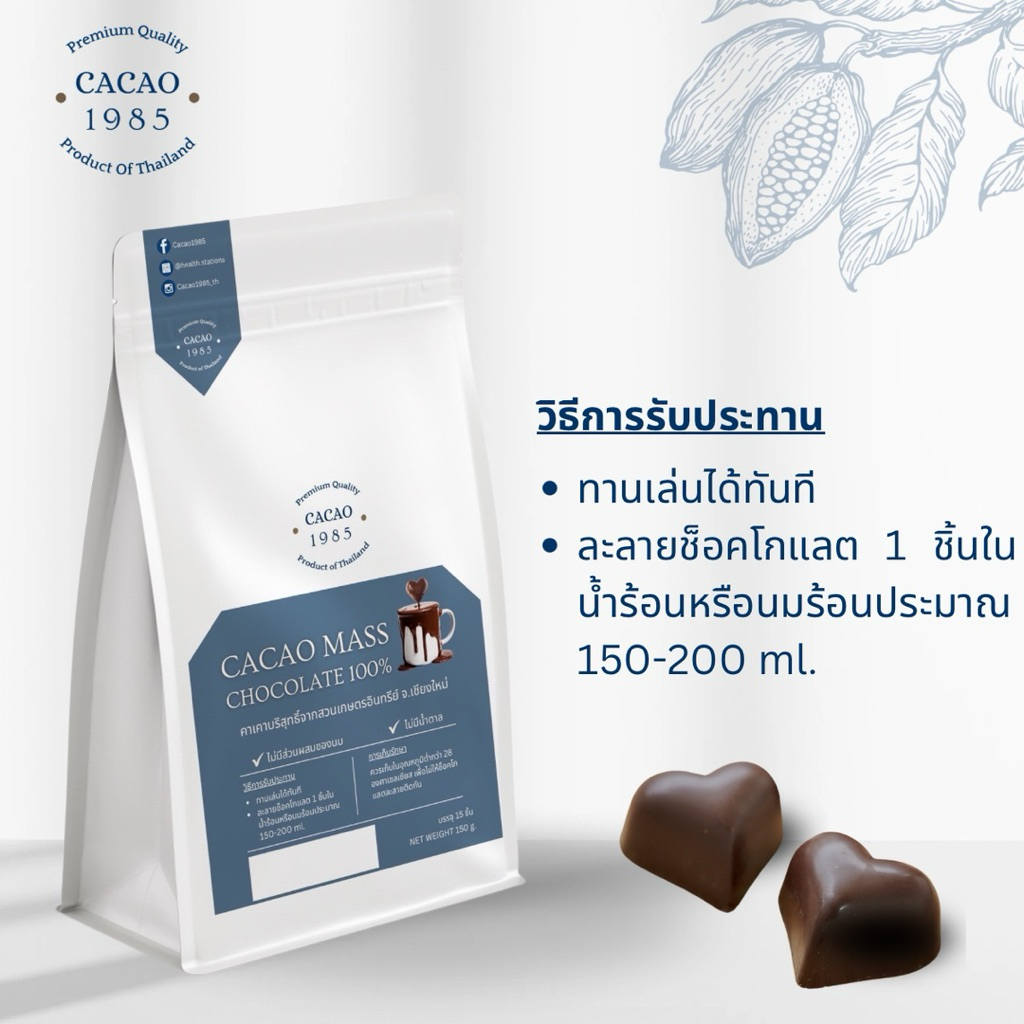 พร้อมส่ง Cacao1985ช็อคโกแลตแท้100%คาเคาแมส ขนาดเล็กพร้อมทาน ไม่ผสมน้ำตาล หรือนม คีโต วีแกน เจ ทานได้