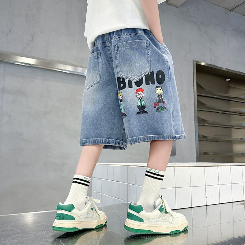 กางเกงยีนส์ลูกชาย กางเกงยีนส์ 5ส่วน ทรงหลวม ลายตัวอักษร#432