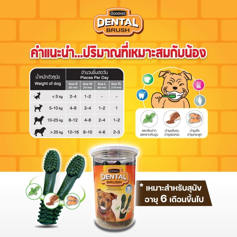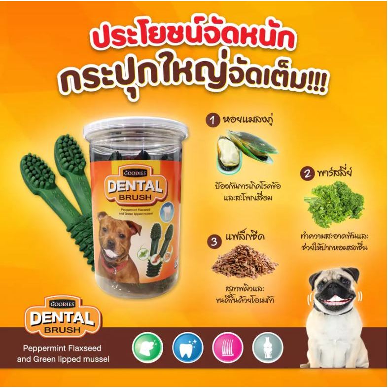Goodies Dental Brush ขนมขัดฟันสุนัข รูปแปรงสีฟัน กลิ่นปากหอม ฟันสะอาด ปริมาณ 400 กรัม ( 1 กระปุก )