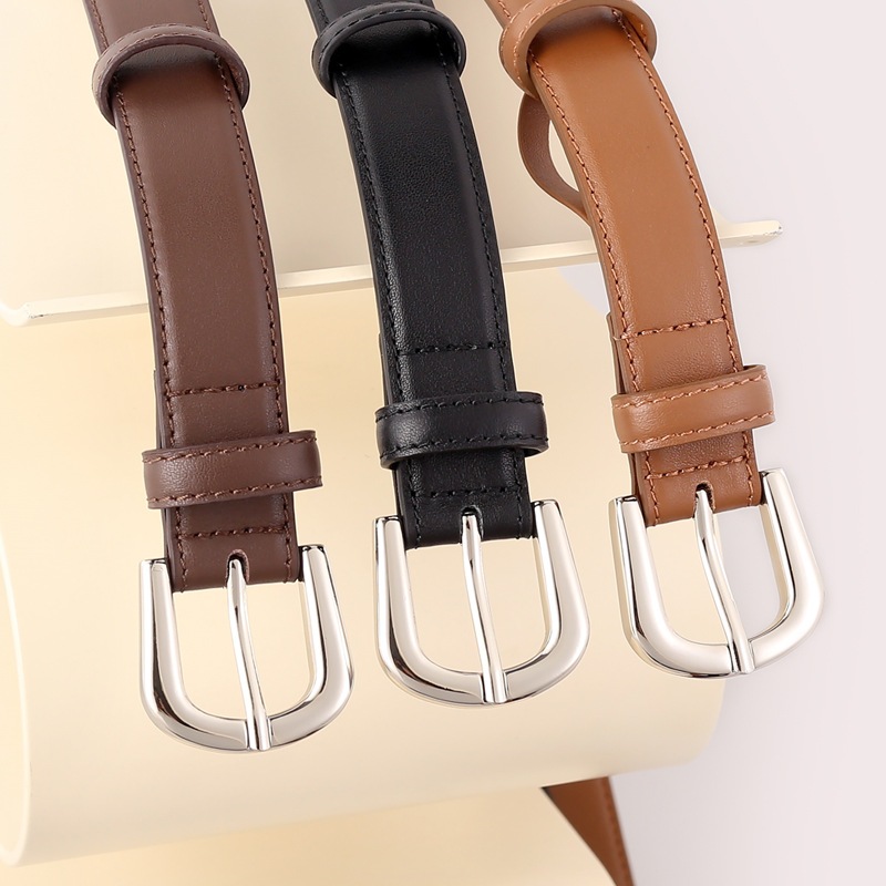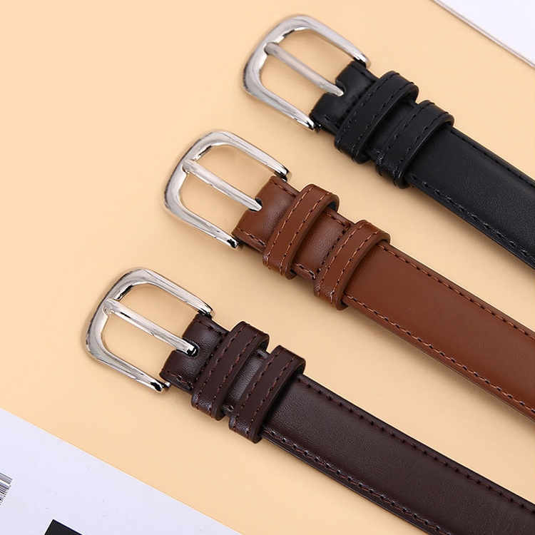 ผู้หญิง เข็มขัดหนัง PU รุ่นคลาสสิก สายเส้นเล็ก หัวเข็มขัดสีเงิน ดีไซน์เรียบหรู ใช้งานง่าย แมทง่าย
