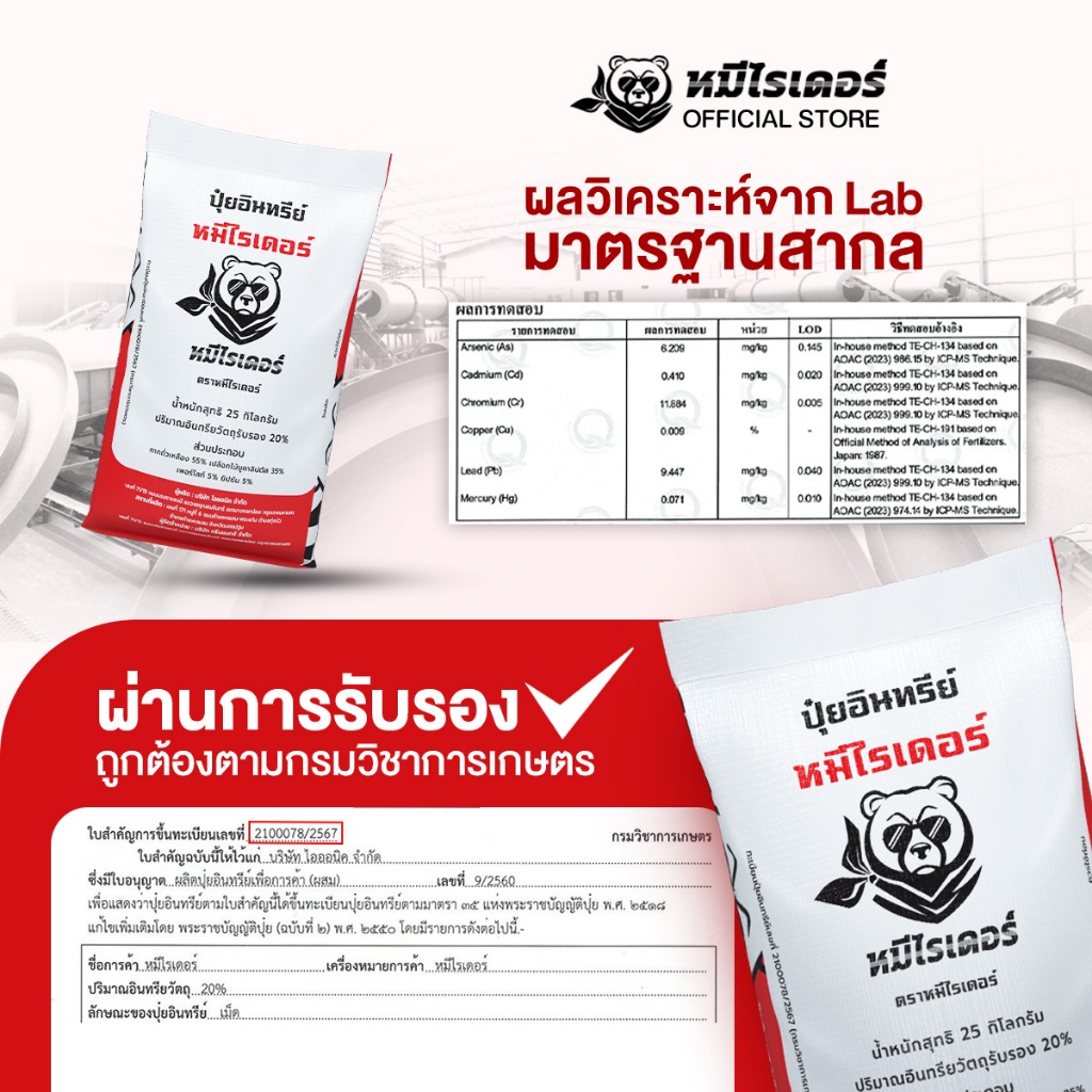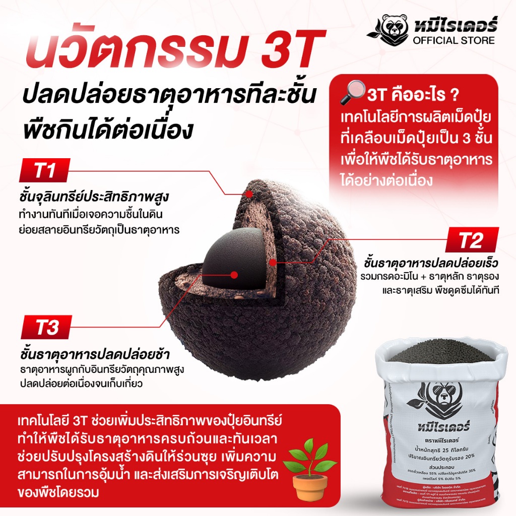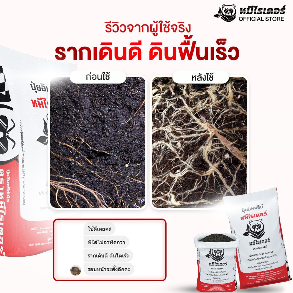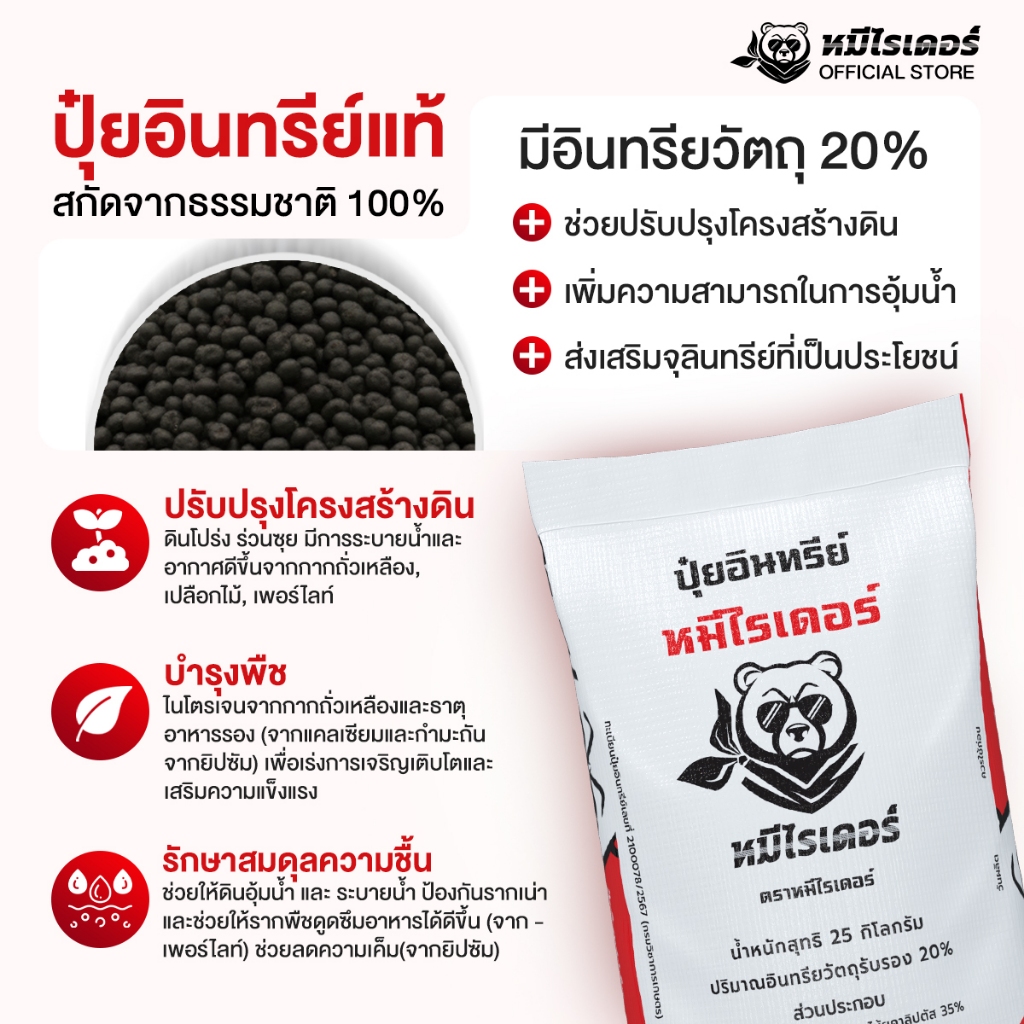 ขนาด 1kg. ปุ๋ยอินทรีย์หมีไรเดอร์ บำรุงดิน ฟื้นดินโทรม รากแผ่กระจาย พืชดูดซึมอาหารได้ 100%