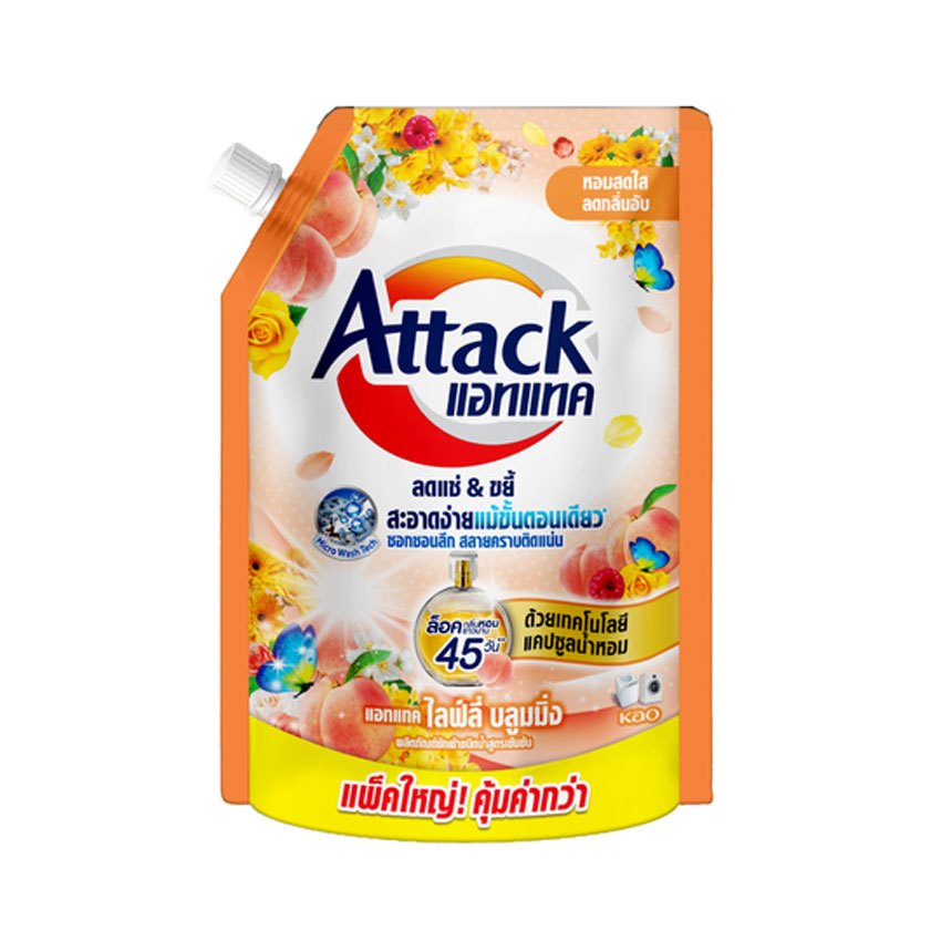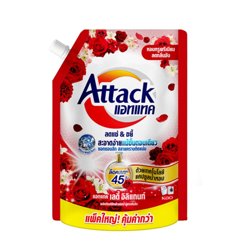 [ทั้งหมด 3 ถุง] แอทแทค น้ำยาซักผ้า ชนิดน้ำ สูตรเข้มข้น ขนาด 1300/1400 มล. ATTACK LIQUID 1300/1400 ML.
