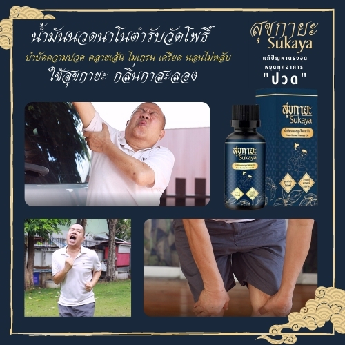 Sukaya น้ำมันนวดสมุนไพรสุขกายะ ตำรับวัดโพธิ์ กลิ่นหอมผ่อนคลาย 30ml. จำนวน 5 ขวด แถมไม้นวด