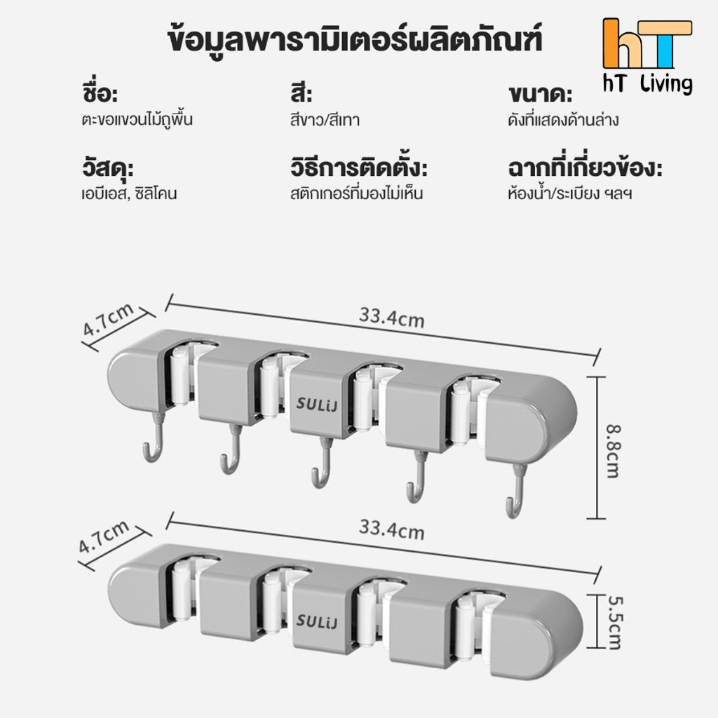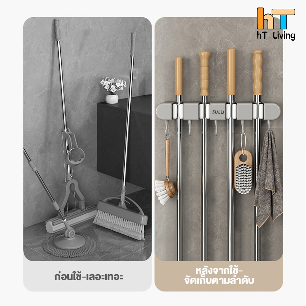 HT ที่แขวนไม้ถูพื้น ที่แขวนไม้กวาด ที่แขวนฝักบัว ที่แขวนแปรงขัดห้องน้ำ ที่แขวนของใช้ภายในบ้าน ไม่ต้องเจาะ