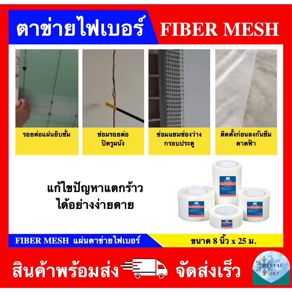 SCLASS Fiber Mesh ผ้าตาข่ายไฟเบอร์ ยี่ห้อ เอสคลาส ขนาด 8 นิ้ว x 25 ม.