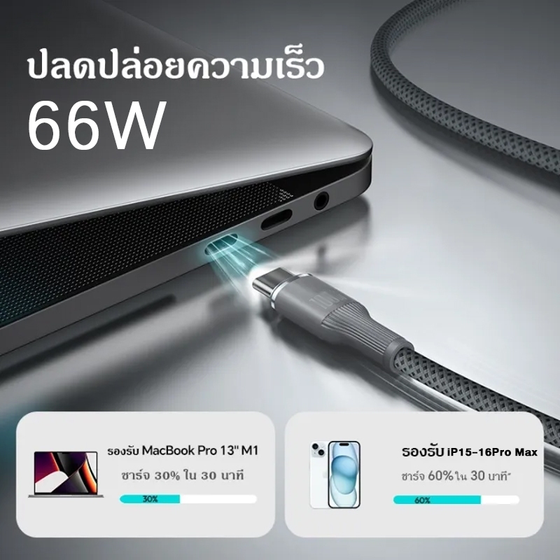 GenesVilla PD 66W สดใสอุปกรณ์ชาร์จสายชาร์จเร็ว Type C to Type-C สำหรับ Fast charging cable charger