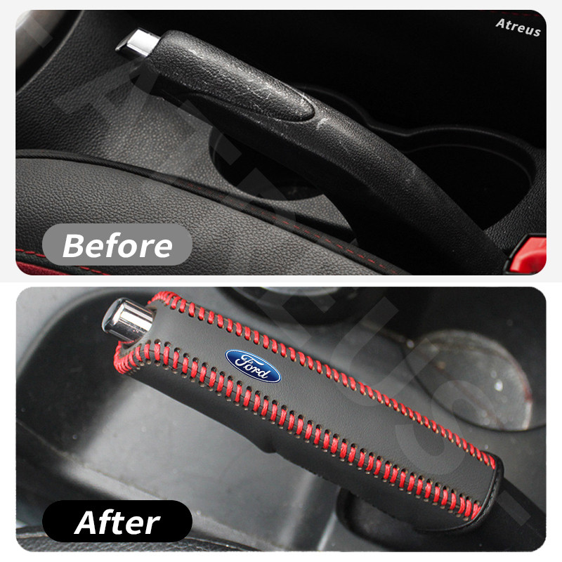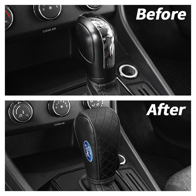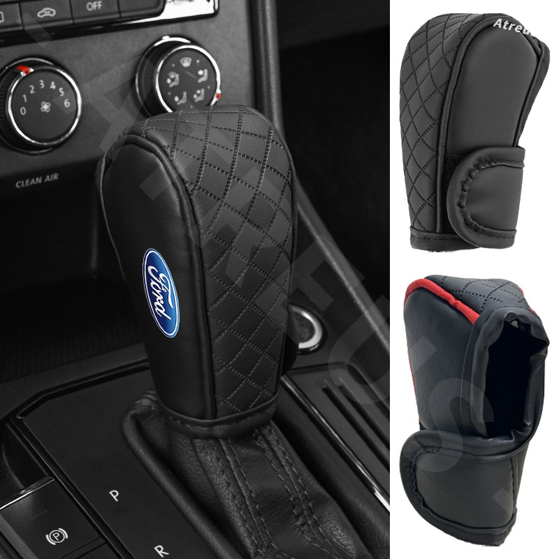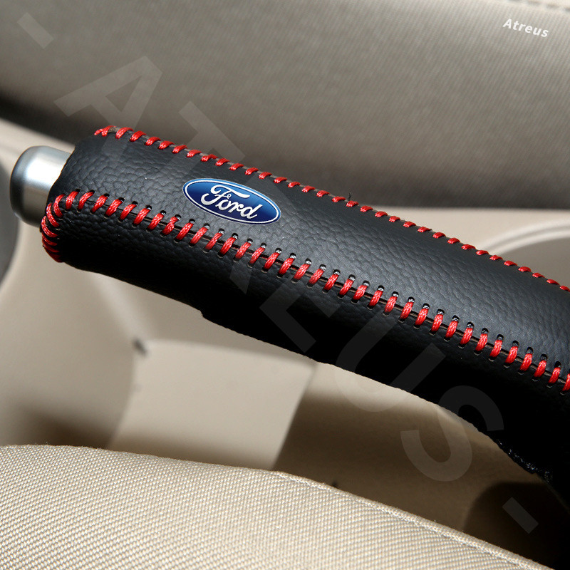 Ford ฝาครอบเกียร์เบรกมือ หนัง ปลอกหนังหุ้มคันเกียร์รถยนต์ ที่ปรับระดับเกียร์ ฝาครอบ ปลอกหุ้มลูกบิดเบรกมือรถยนต์ สำหรับ Ford Ranger Raptor Everest Focus MK2 MK3 Mustang Escape Fiesta Ecosport