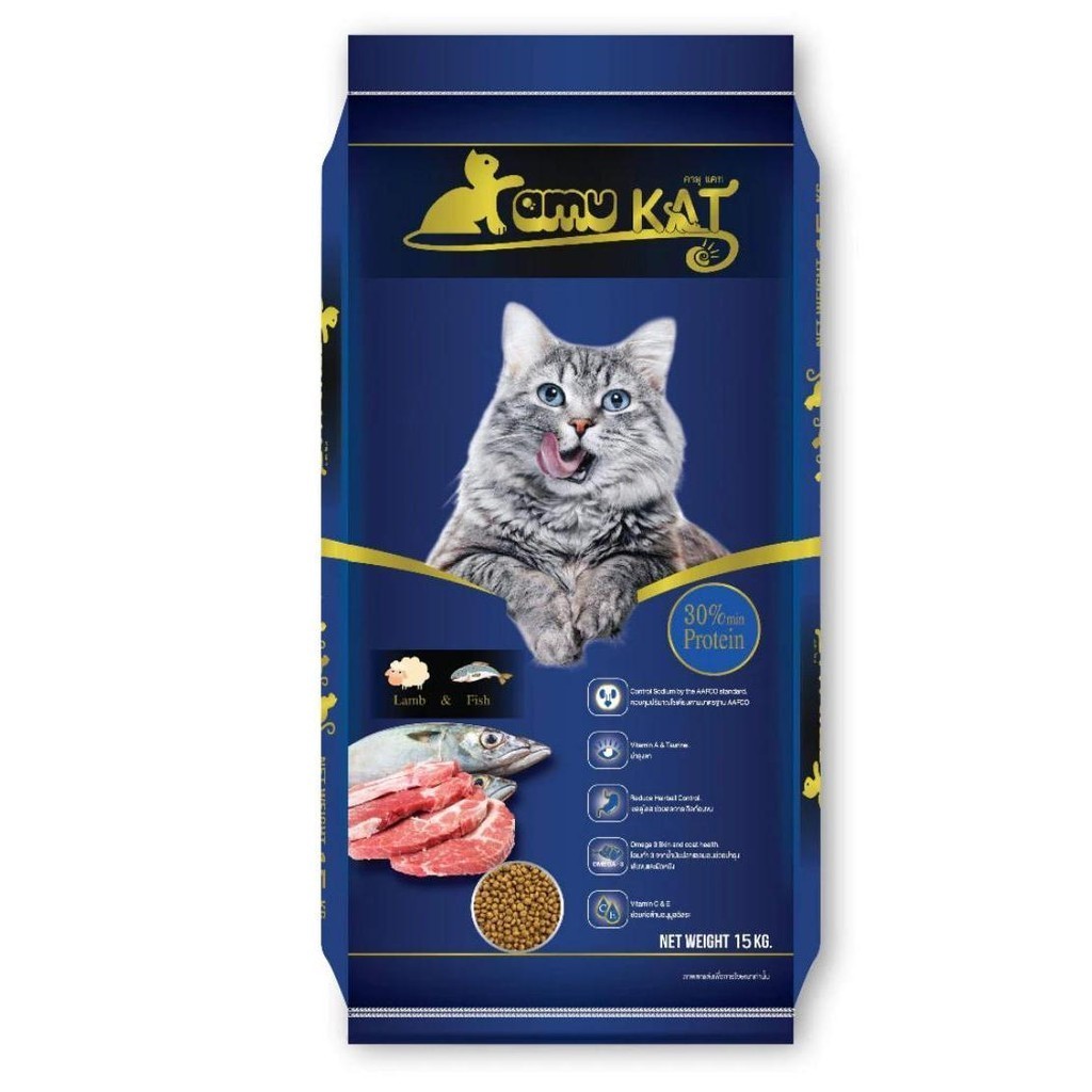 [[ จำนวน5ถุง = 5กิโล ]] อาหารแมว Kamu Kat รสแกะและปลา ความคุมความเค็ม ลดก้อนขน โปรตีน30% ขนาด 1 kg.