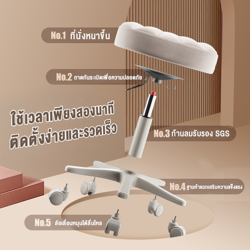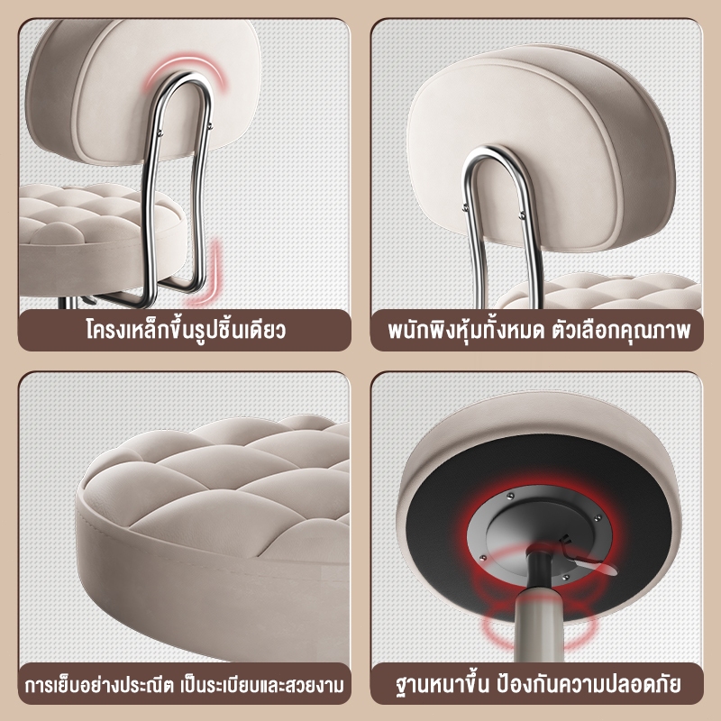 เก้าอี้บาร์ เก้าอี้แต่งหน้า ม้านั่งกลม เก้าอี้ร้านเสริมสวย สตูล ปรับได้ เก้าอี้มีล้อ หมุนได้ 360องศา ปรับระดับได้ มีที่พ