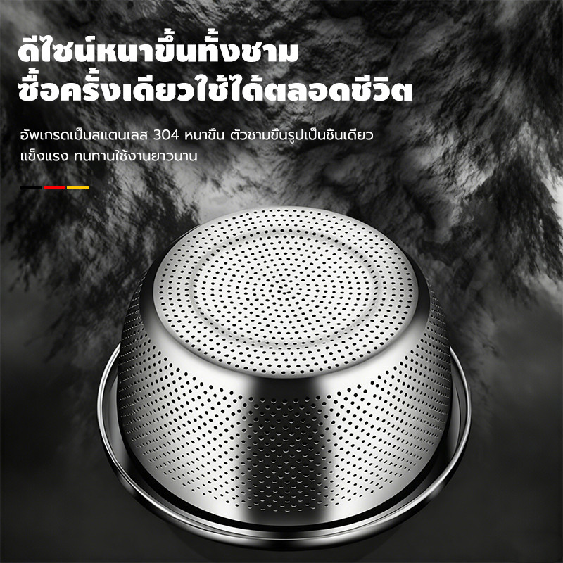 กะละมังสแตนเลสมีรู 304 กะละมังรูล้างผัก ผลไม้อย่างหนา สแตนเลสแท้ ไม่ขึ้นสนิม ใช้ดี ช่วยให้ผัก ผลไม้ เสด็จน้ำ มีให้เลือก