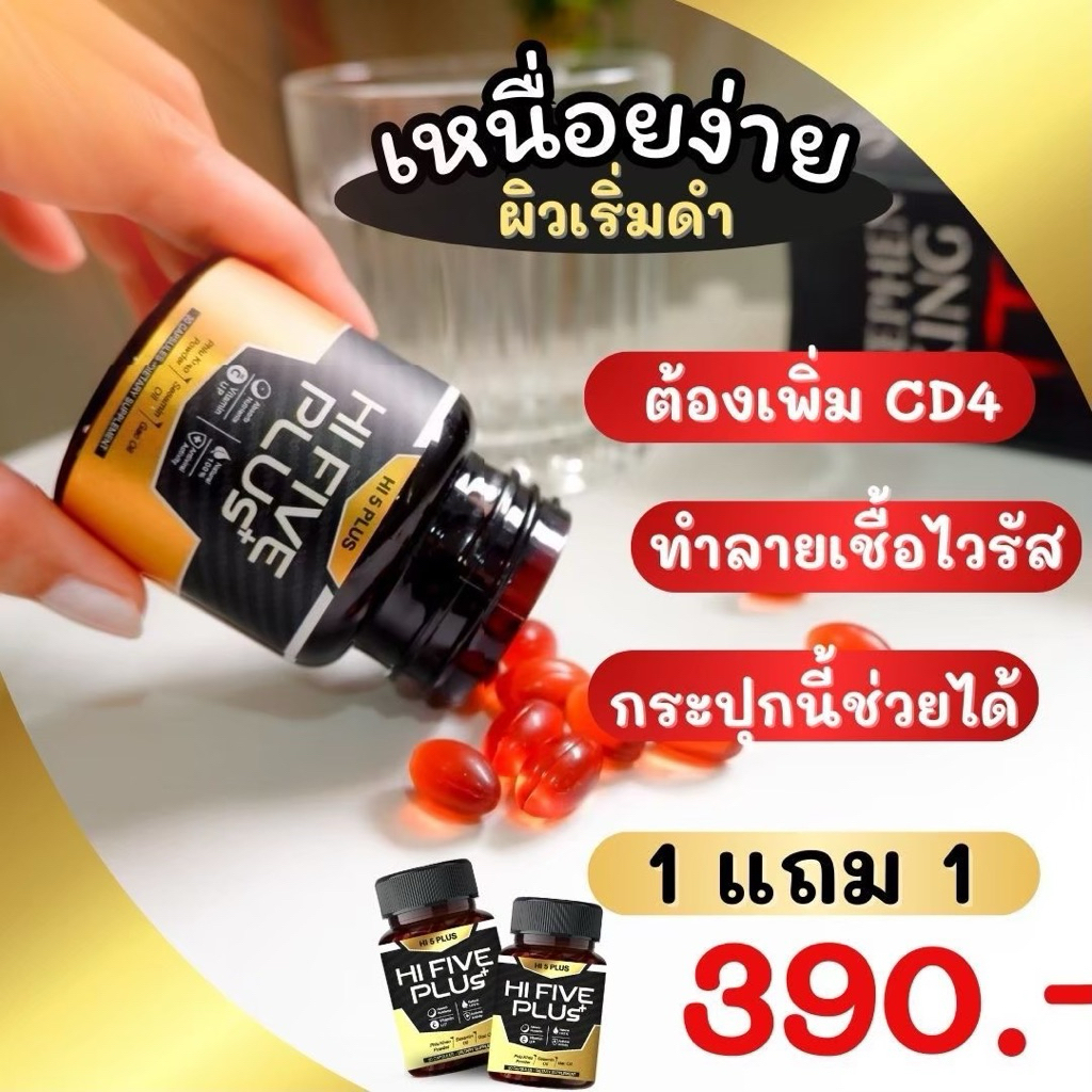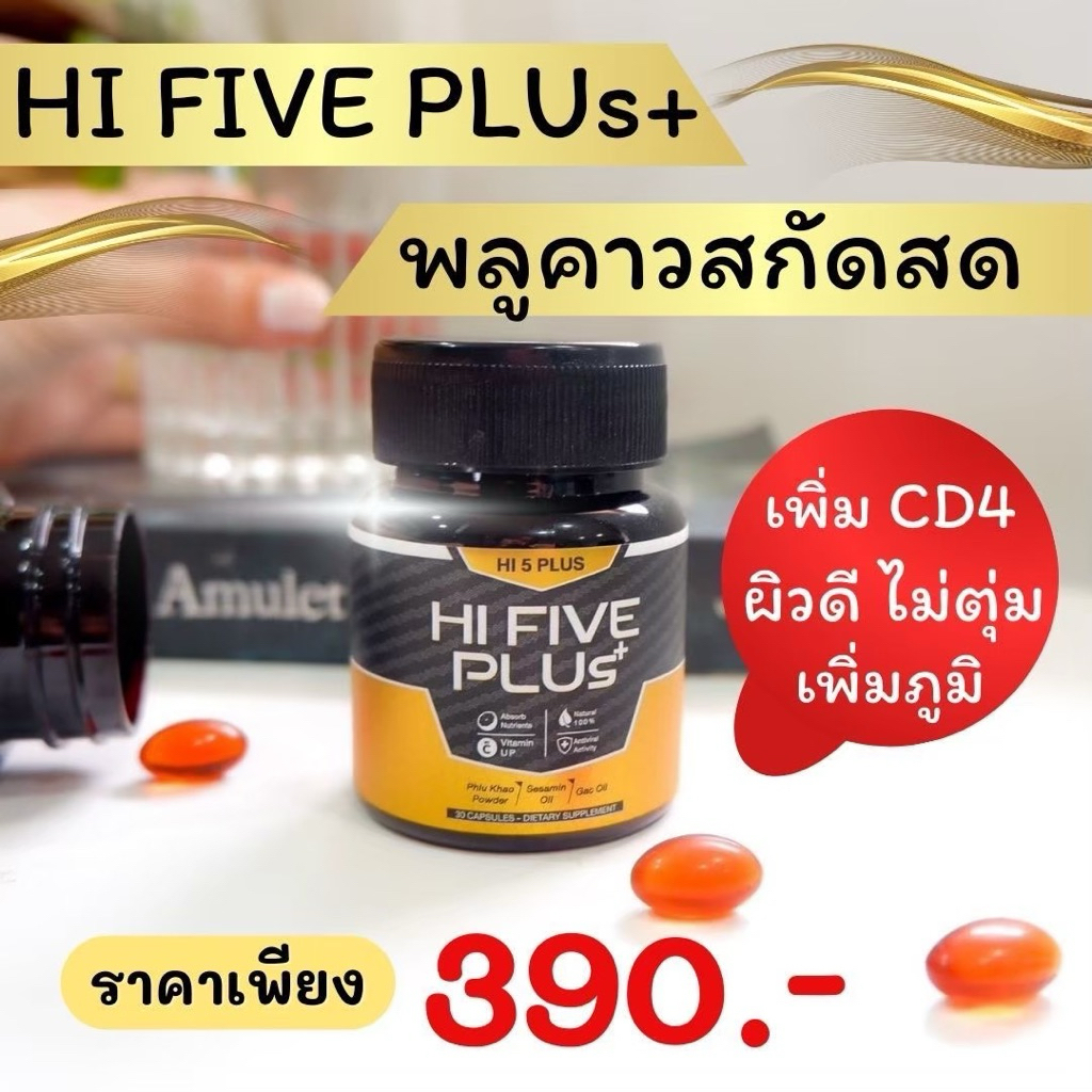 Hi Five Plus+ ไฮไฟท์พลัส สมุนไพรพลูคาวสกัดสด ทำลายเชื้อไวรัส เสริมภูมิคุ้มกัน เพิ่ม CD4 (1 กระปุก 30 ซอฟเจล)