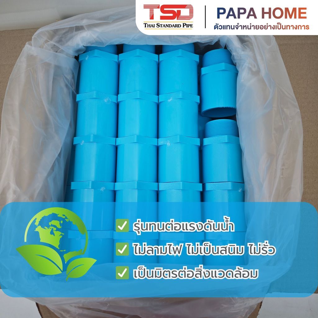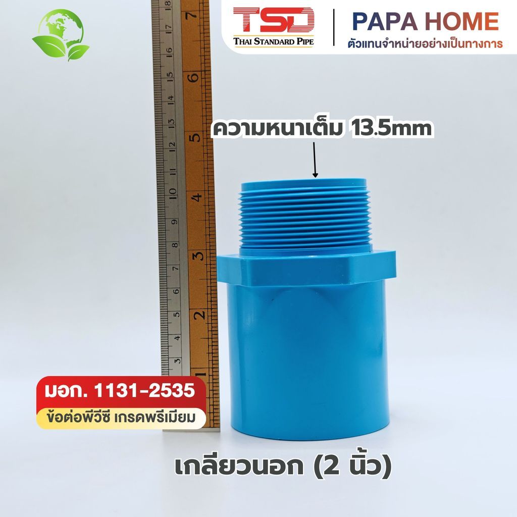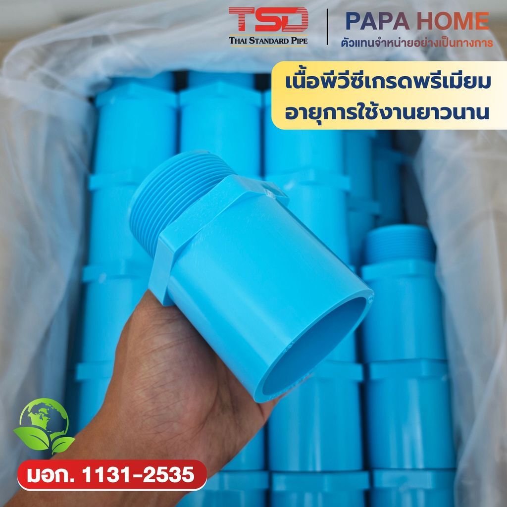 ข้อต่อตรงเกลียวนอก PVC 2" (55 มม.) TSD รุ่นหนา 13.5 ข้อต่อประปาทนแรงดันน้ำสูง พีวีซี มาตรฐาน มอก. ปลอดภัย